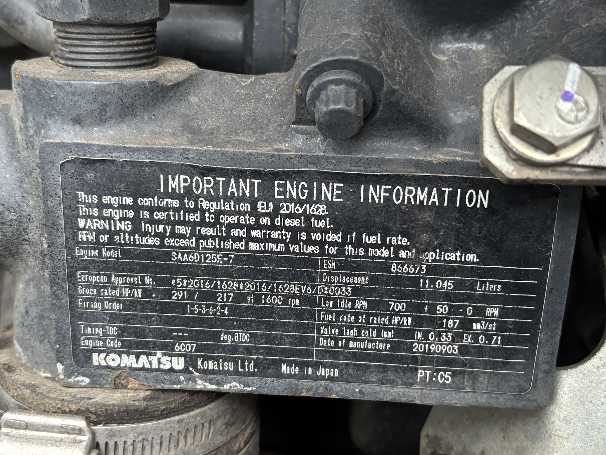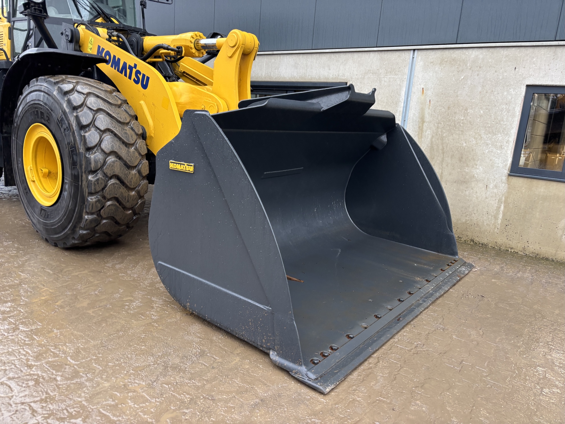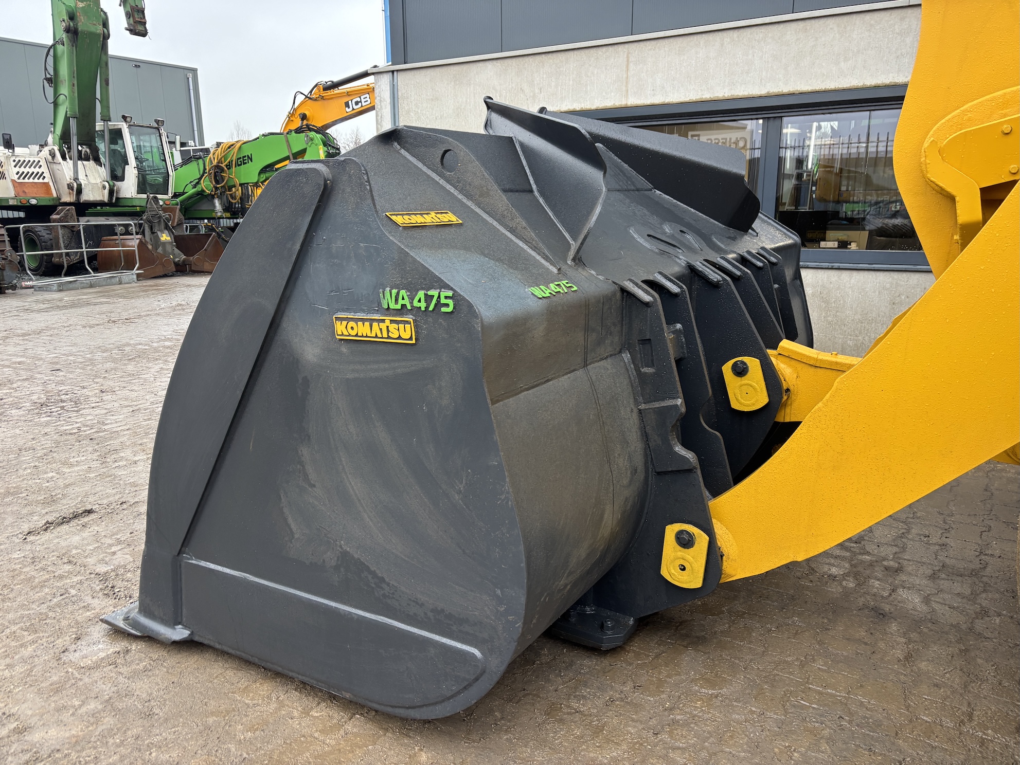 This Komatsu WA475-10E0 is equipped with a 6 cilinder water cooled turbo charged Komatsu SAAD125E-7 diesel engine (216kW) with 9538 working hours on the service meter. Excellent bulk bucket, 4x good Michelin tires, weight scale, rear view camera, airco, radio, central lubrication, extra counter weight 400kg, air suspension seat with heat control, additional work lights etc.