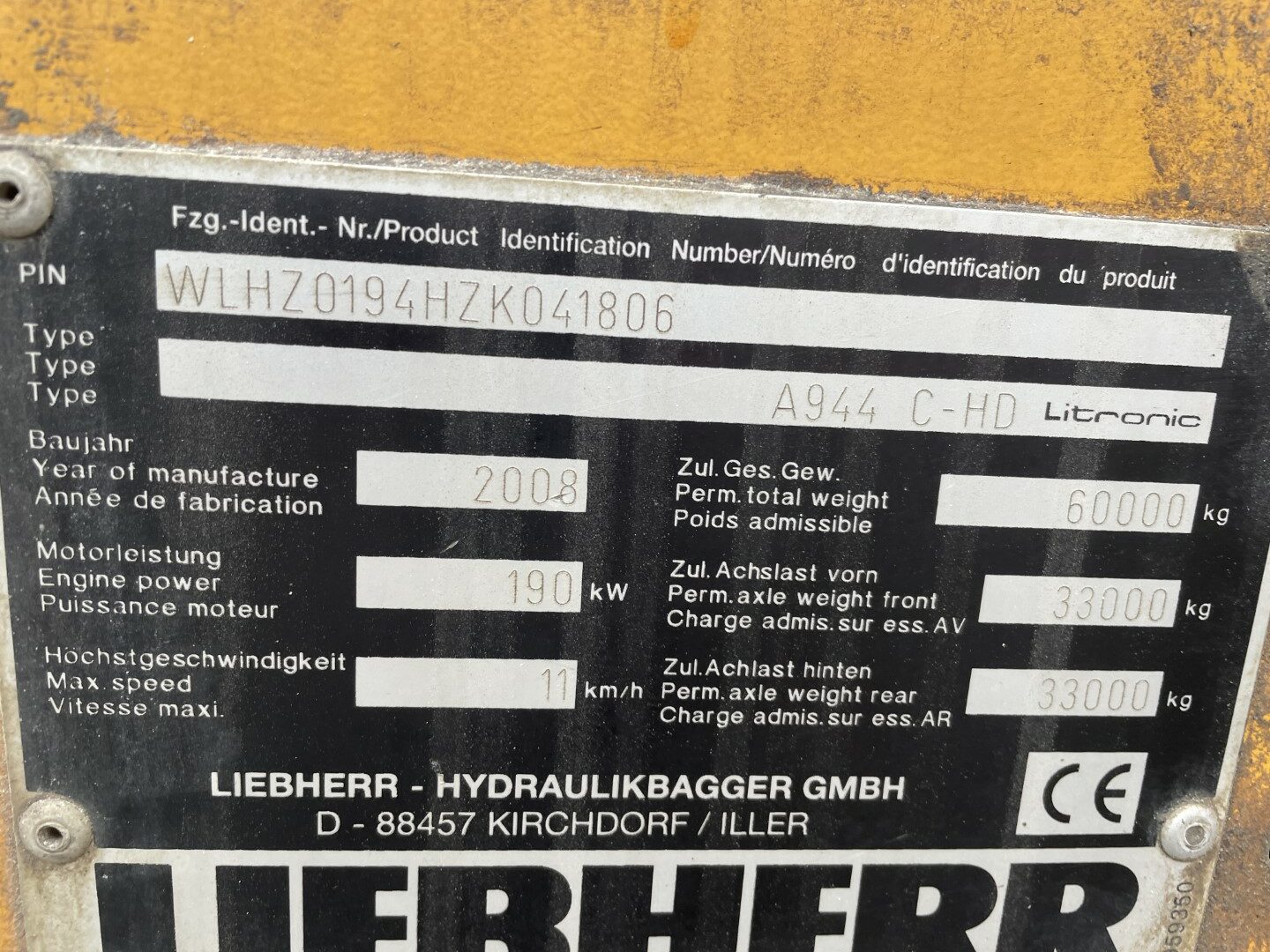 6 cylinder Liebherr D936L Tier 3 turbo diesel engine (190KW / 258 HP) at 1800 RPM with 16919 working hours on the service meter