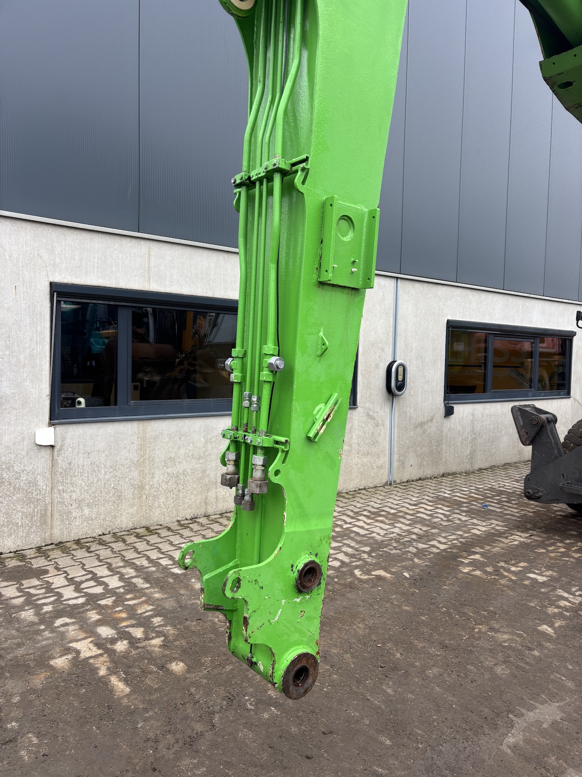 This Sennebogen 818 ULM is equipped with a 4 cilinder water cooled turbo charged Cummins QSB4.5 (97kW) diesel engine with just 8659 working hours on the service meter. ULM stick, high rise cab, full rubber tires, 4 outriggers, central lubrication, airco, radio etc..