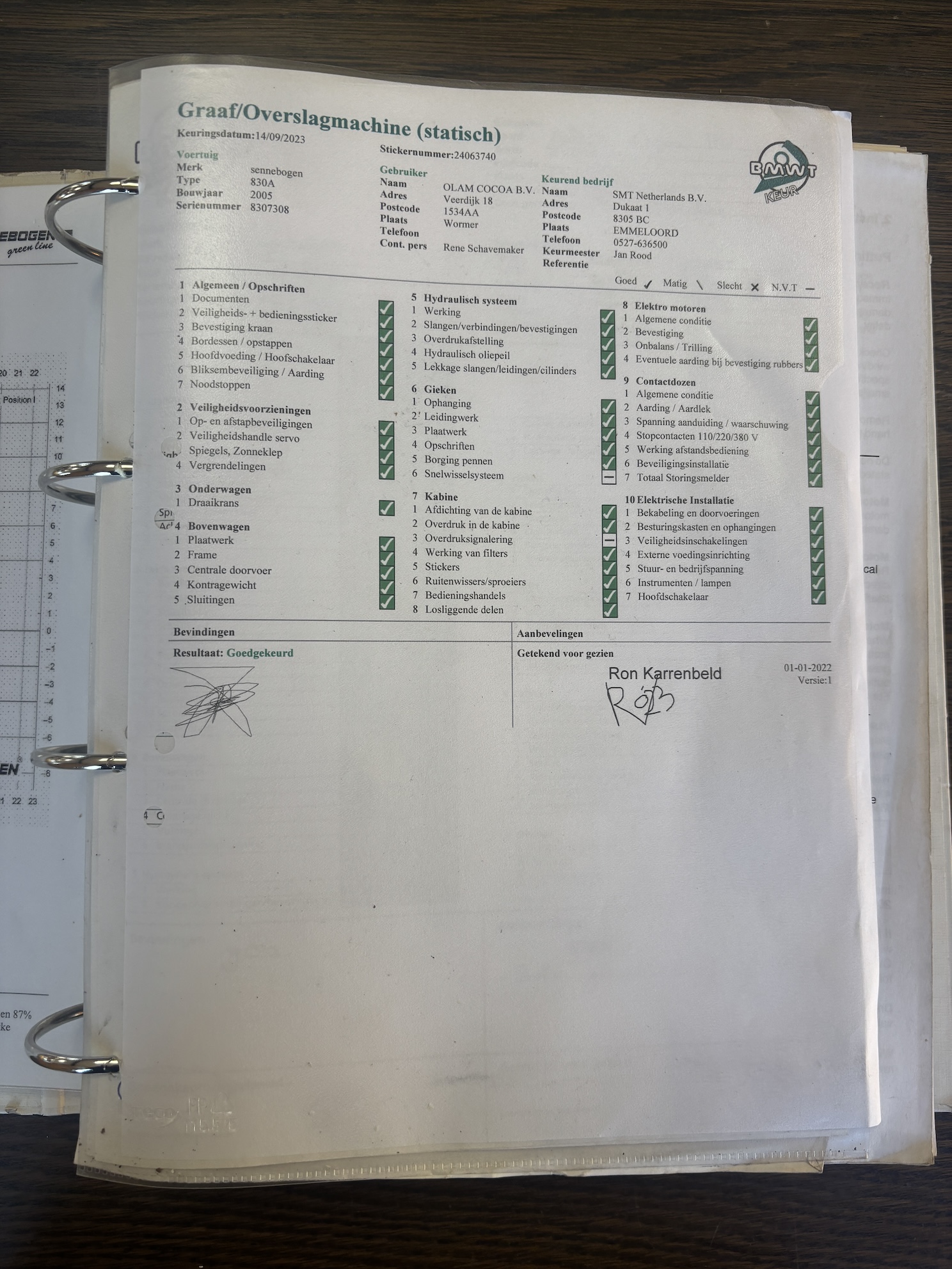 Pedestal, with 4 point outriggers including 1.6 meter pylon. Central lubrication, airo, radio, all additional books available. Catwalk around the upper carriage, Dutch machine. Grab in the picture is not included.