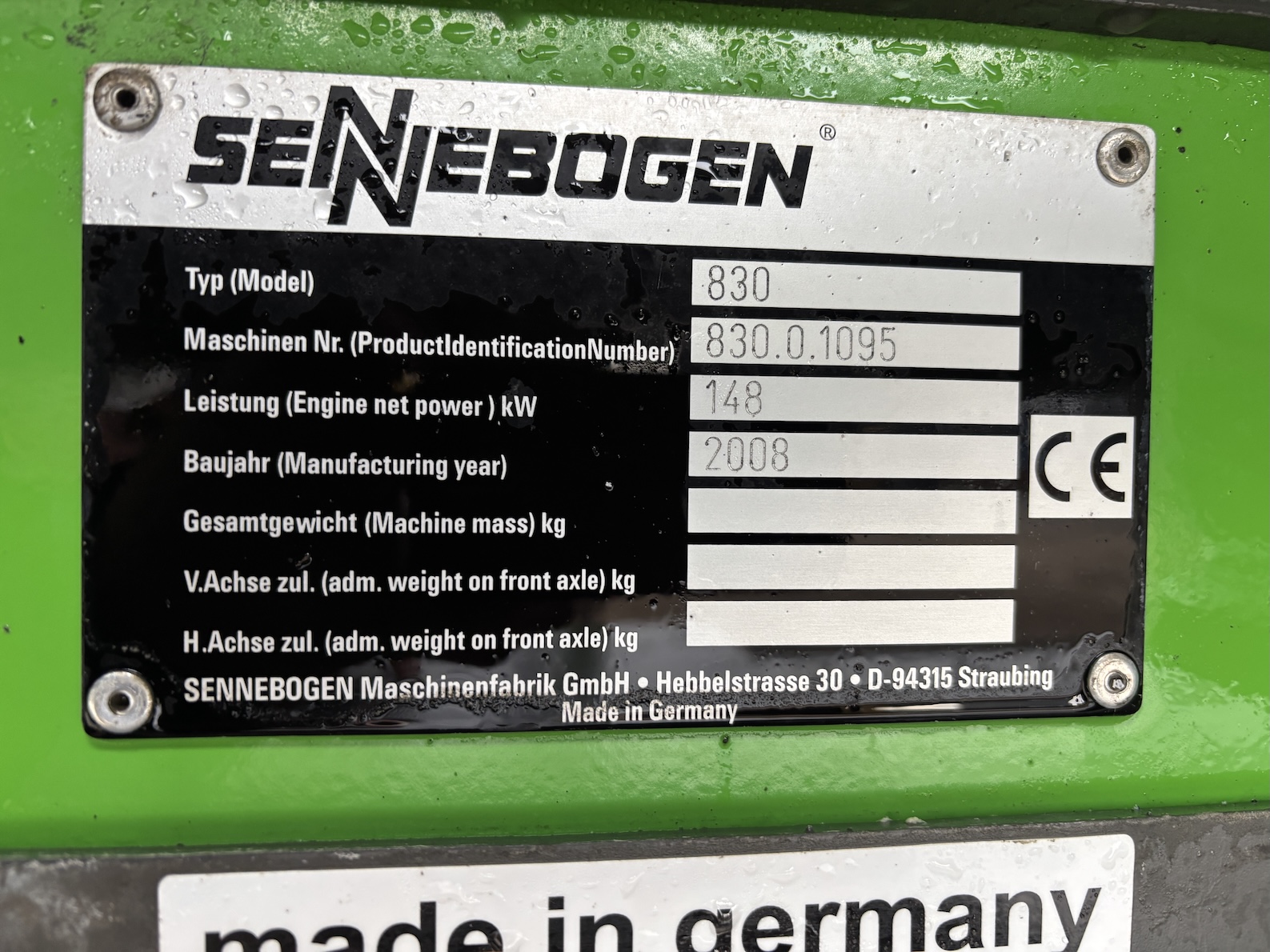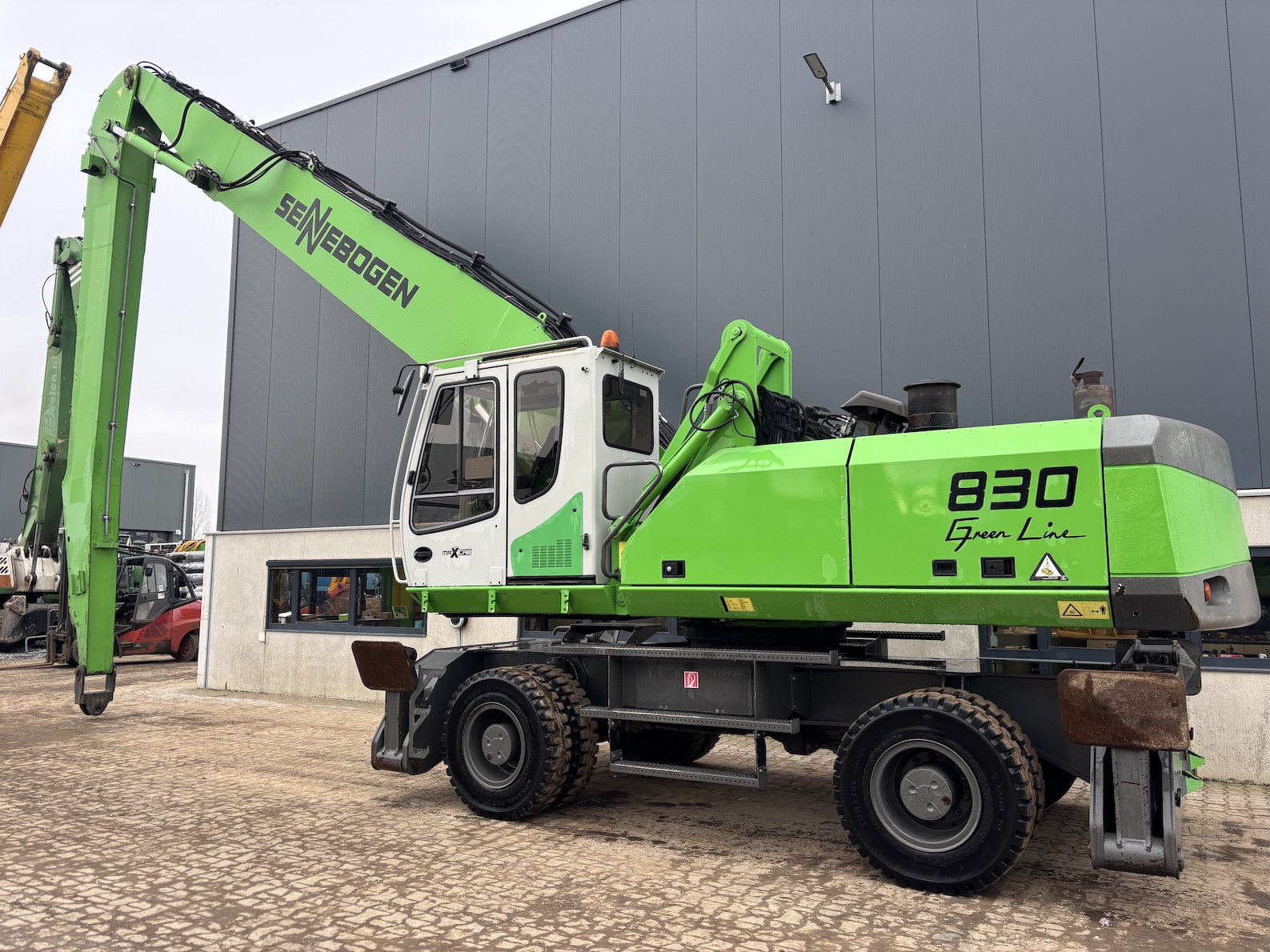 Extremely nice Sennebogen 830 from first owner! Always unload sand at quay. Dealer maintained. Engine has been replaced. Very tidy, original paint, no damages. Tires like new. For more information please contact us.