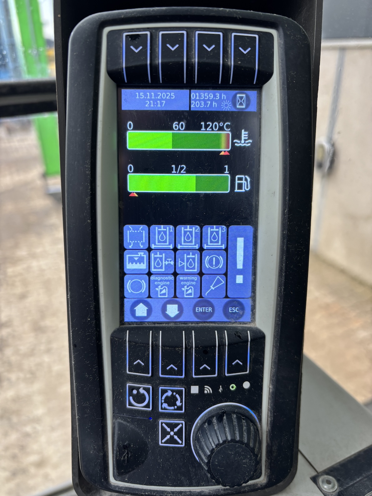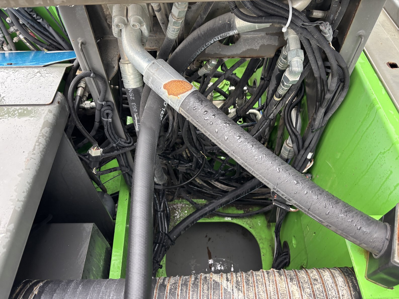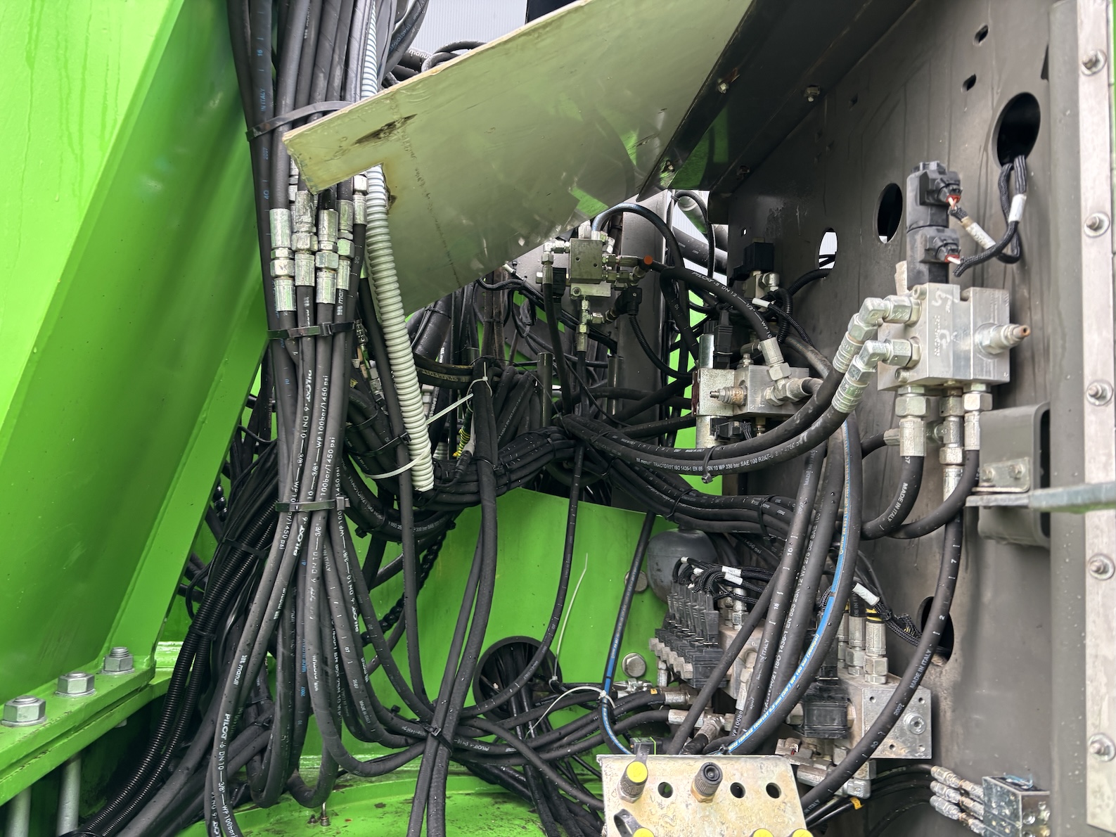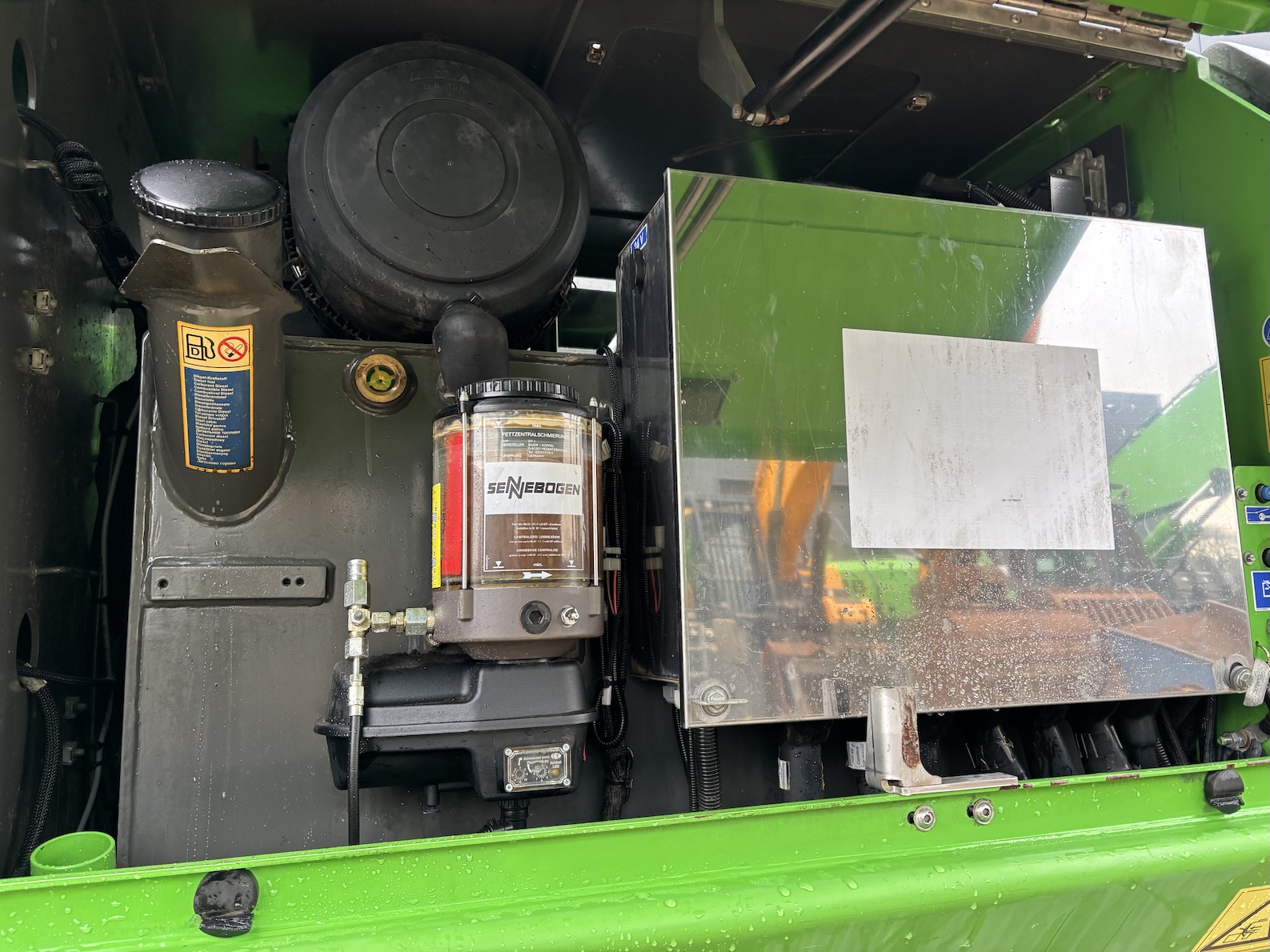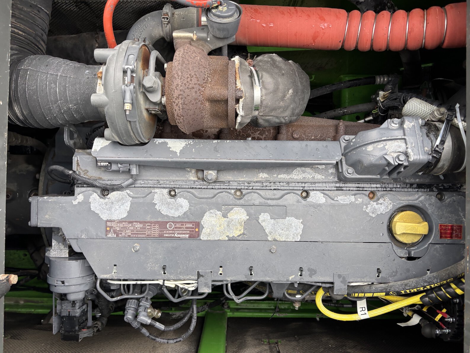 This Sennebogen is equipped with a 6 cilinder water cooled turbo charged (Exchange) Deutz TCD 2013 L 06 2V diesel engine (148kW) with 13449 working hours on the service meter. K17 work equipment (17 meters reach), camera on inside of the stick to look into vessels, 4x full rubber tires, books and manuals available, airco, central lubrication etc.