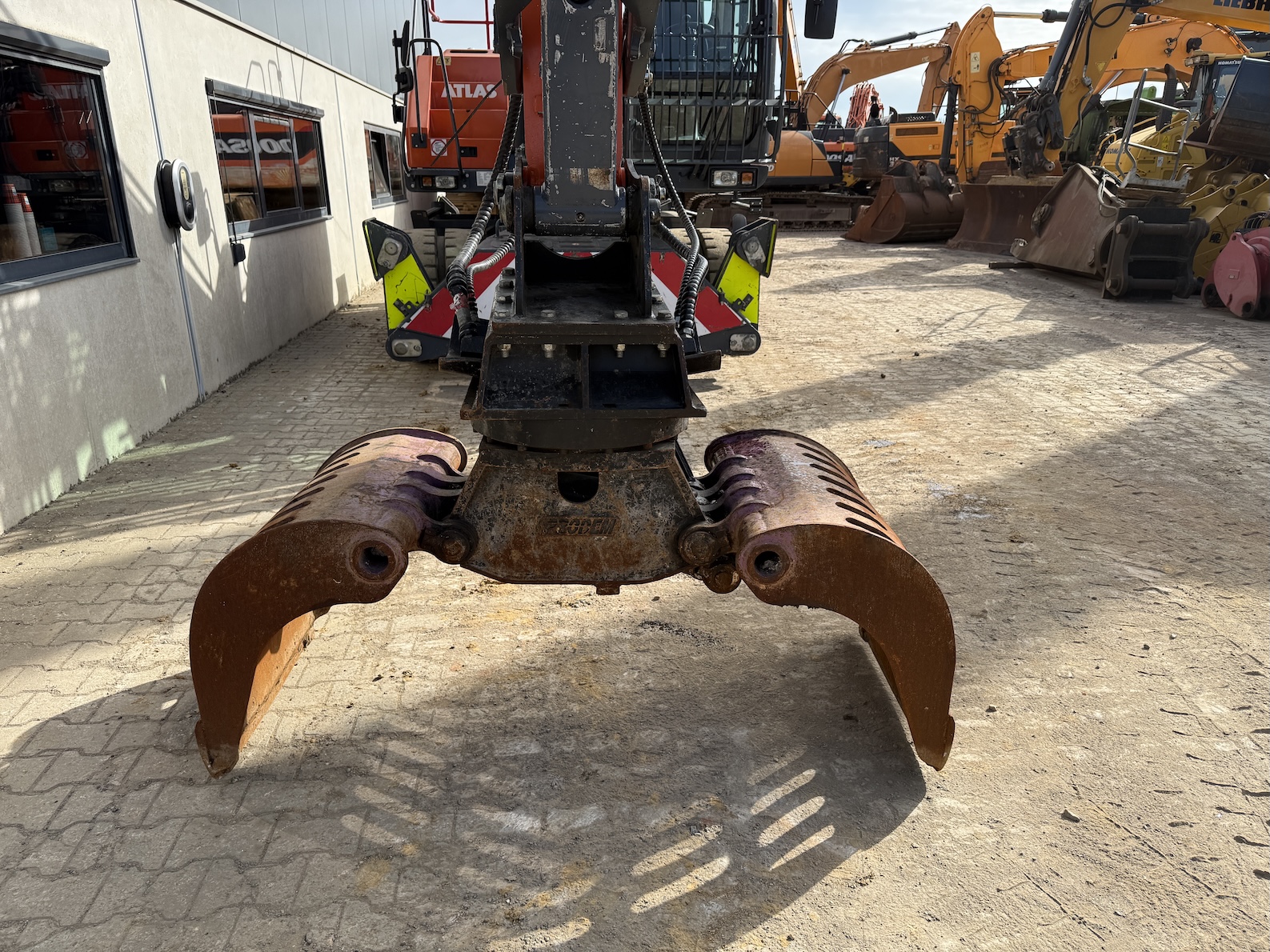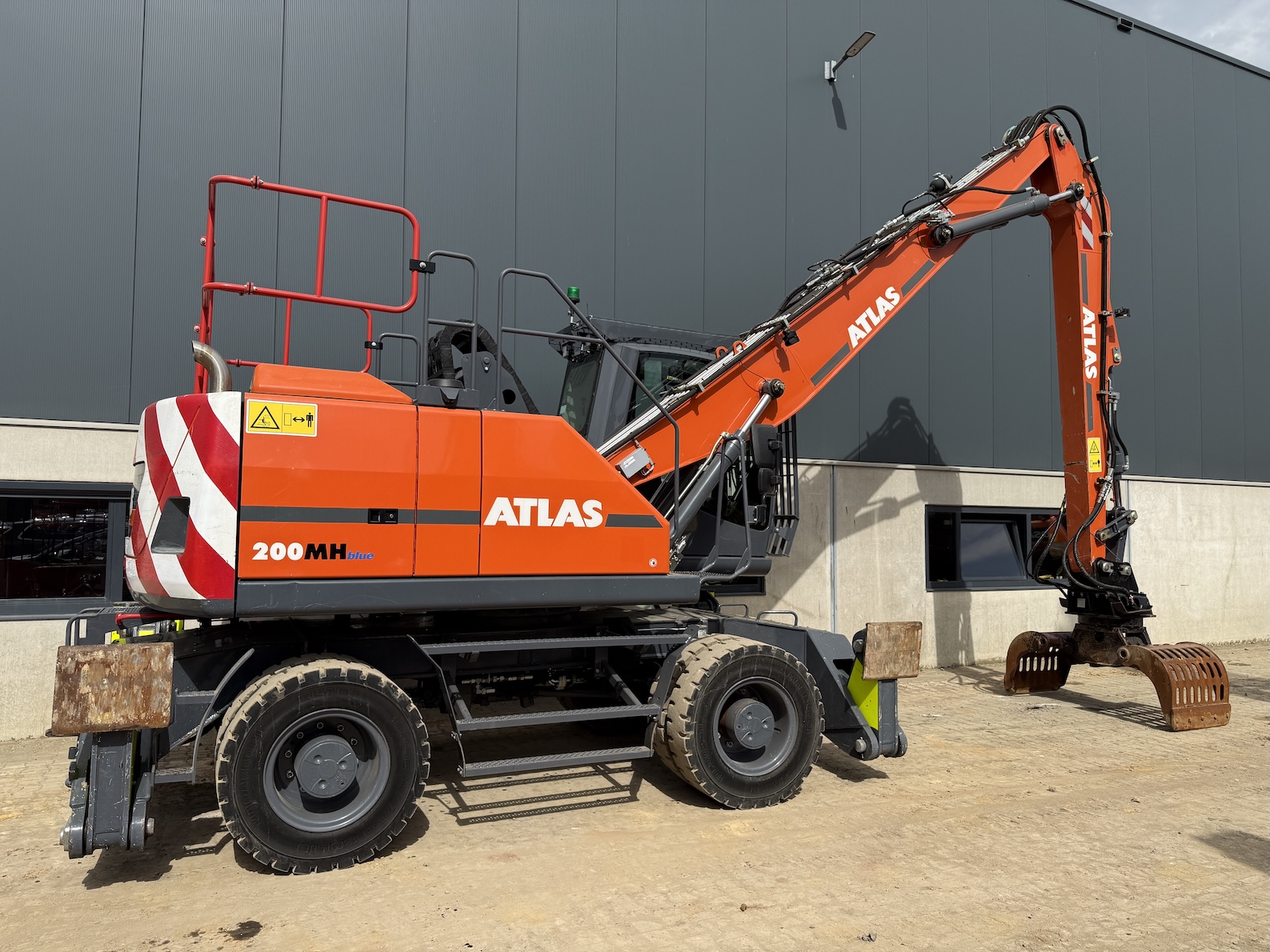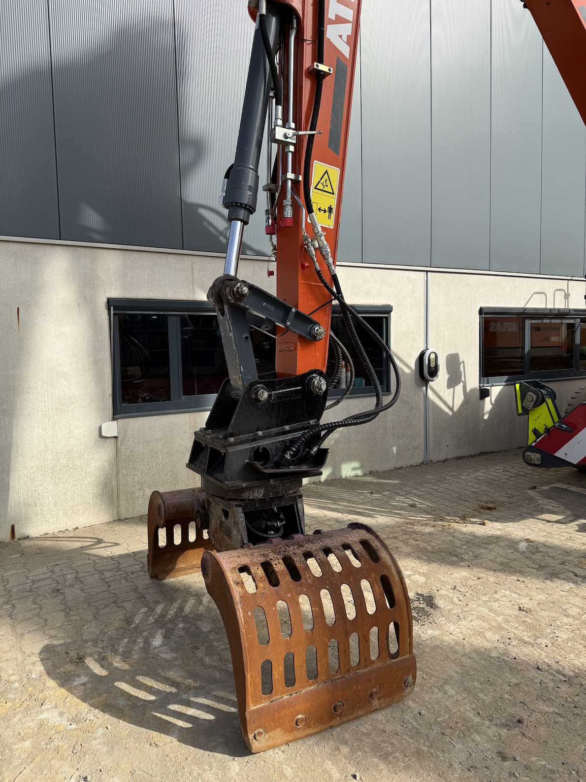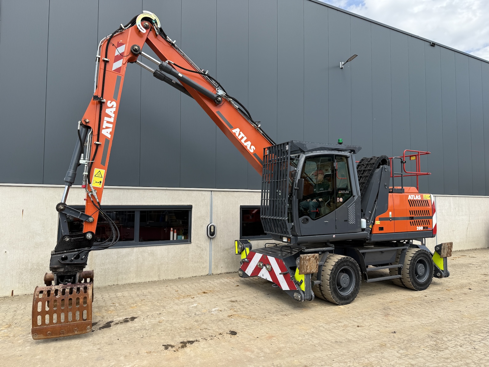This Atlas 200MH is equipped with 4 cilinder water cooled turbo charged Deutz TCD 6.1 L6 (105kW) with just 3.324 working hours on the service meter. 6 meter boom, 4 meter stick which results in a reach of 10 meters. Sorting and demolition grab included, additional work lights, cabin protection, boxing ring, full rubber tires, 4 outriggers, central lubrication, rear and side view camera system, airco, radio etc..