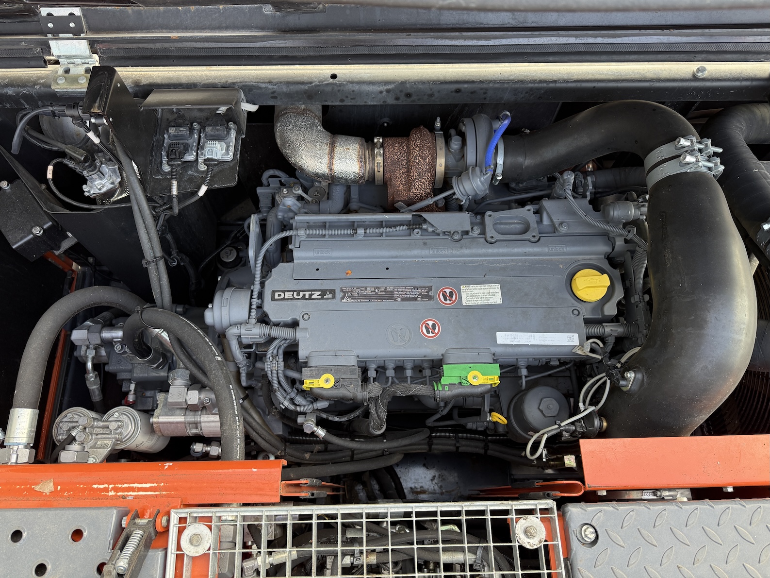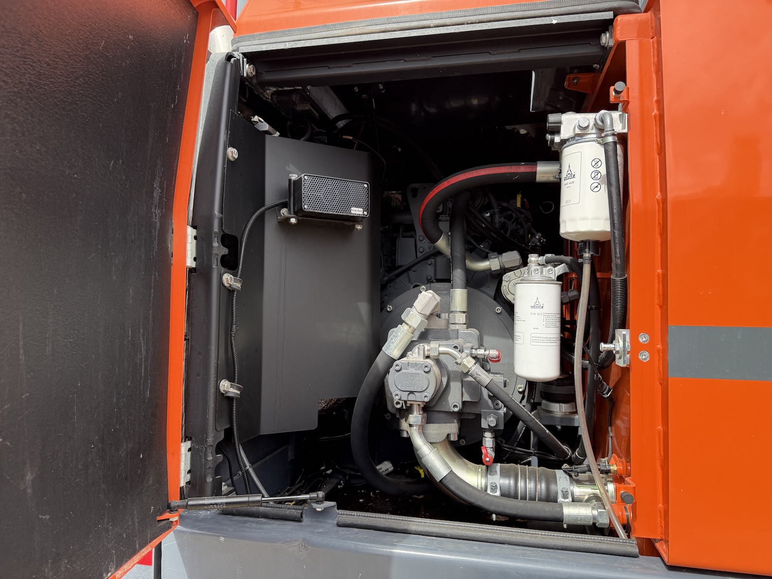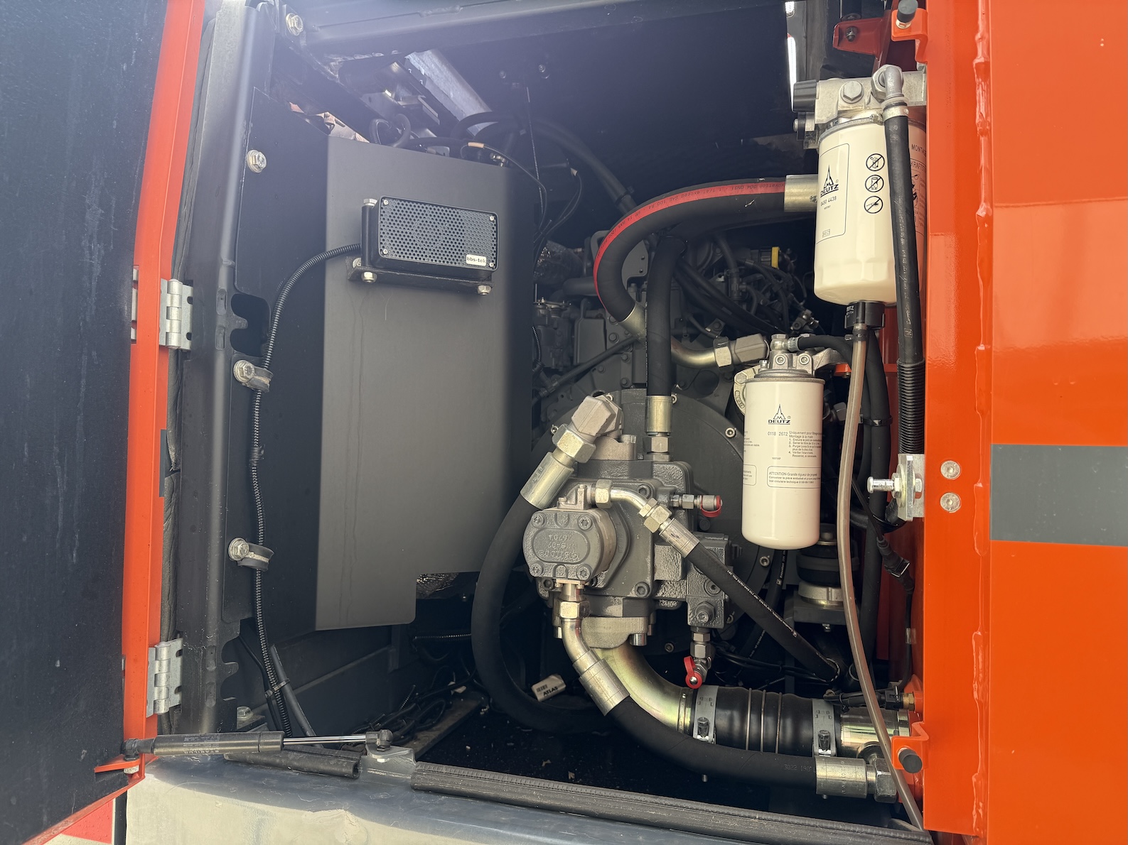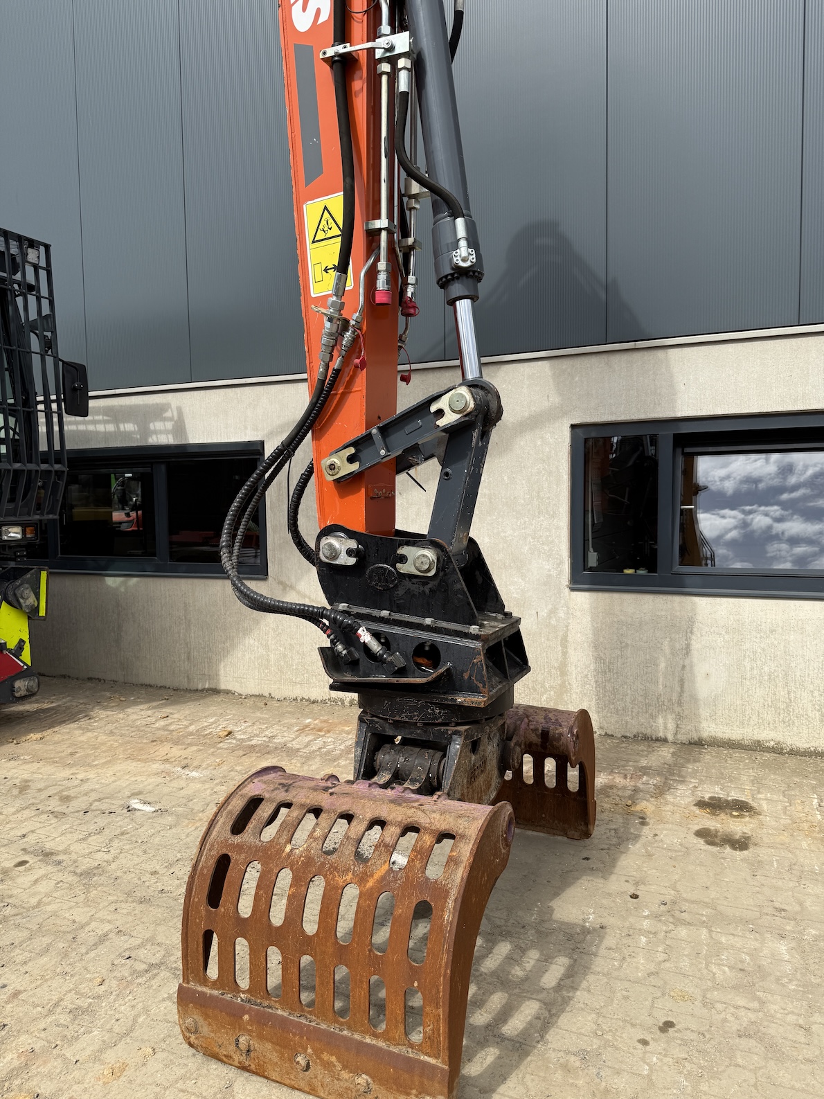 This Atlas 200MH is equipped with 4 cilinder water cooled turbo charged Deutz TCD 6.1 L6 (105kW) with just 3.324 working hours on the service meter. 6 meter boom, 4 meter stick which results in a reach of 10 meters. Sorting and demolition grab included, additional work lights, cabin protection, boxing ring, full rubber tires, 4 outriggers, central lubrication, rear and side view camera system, airco, radio etc..