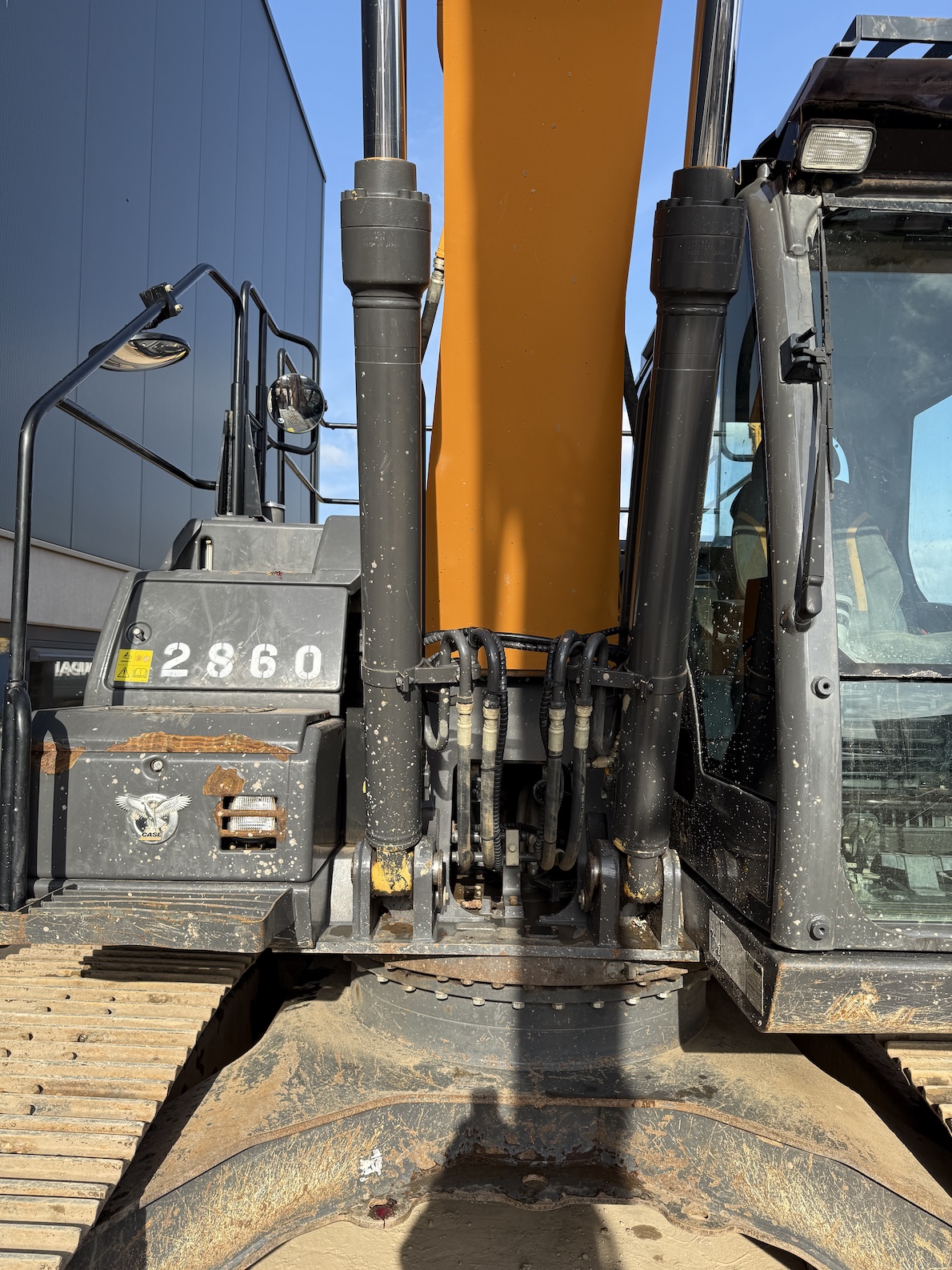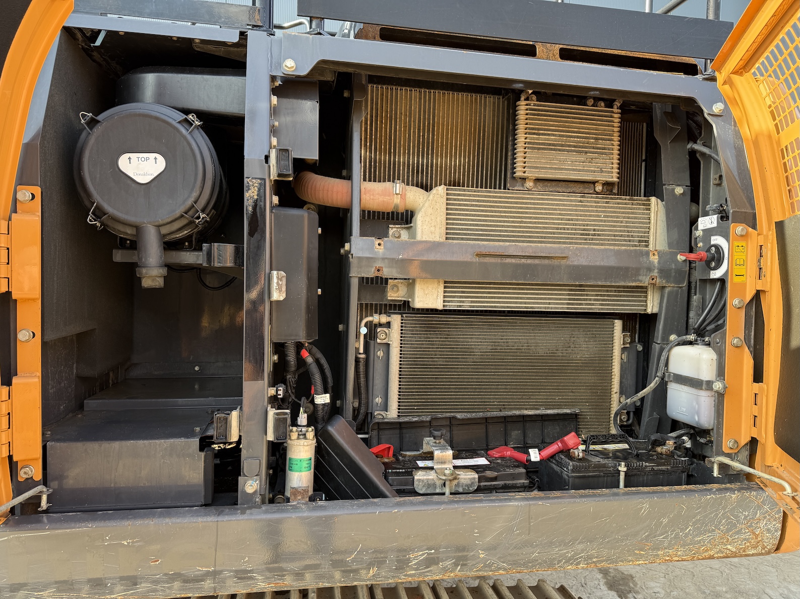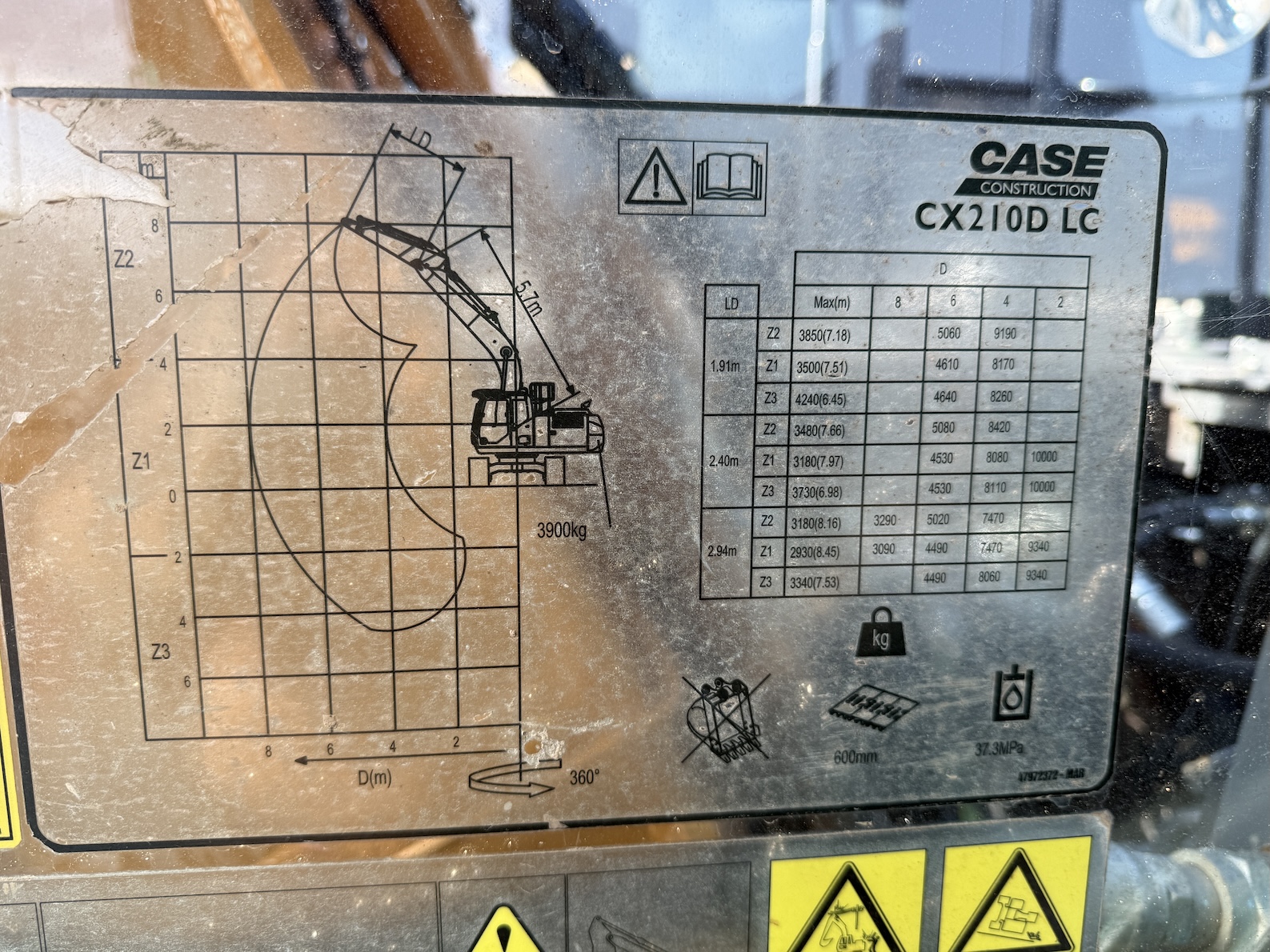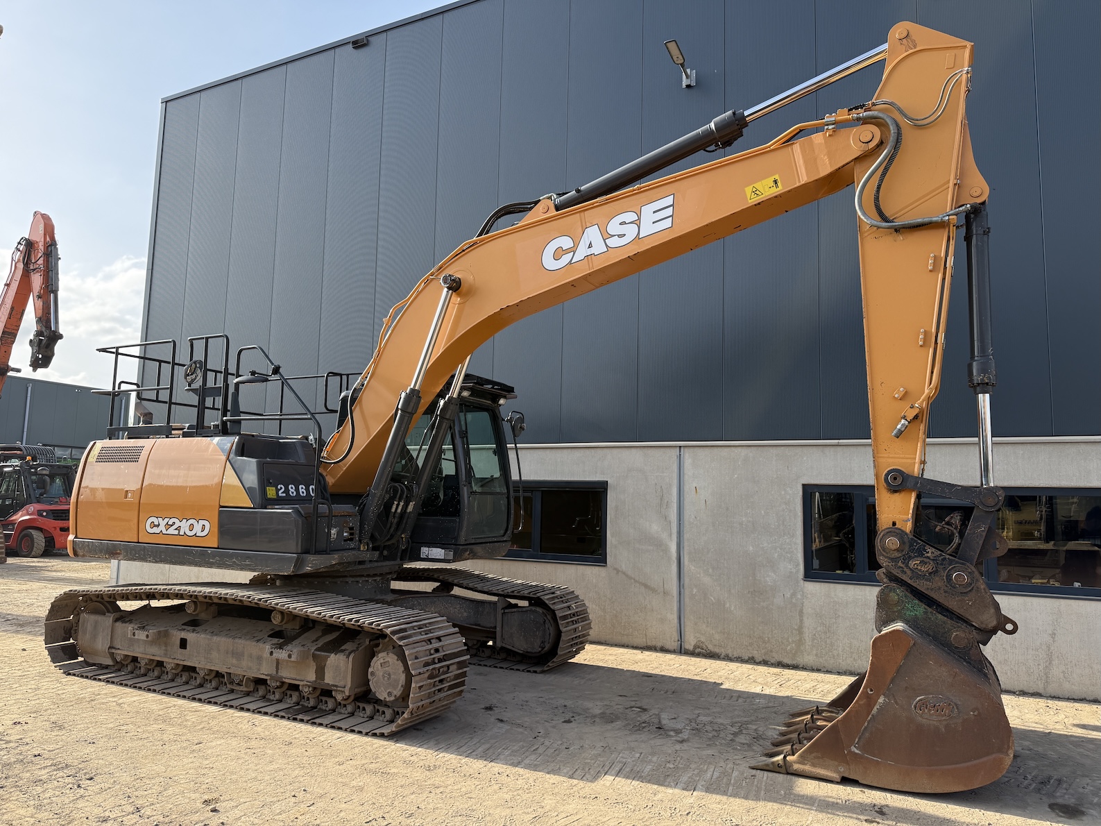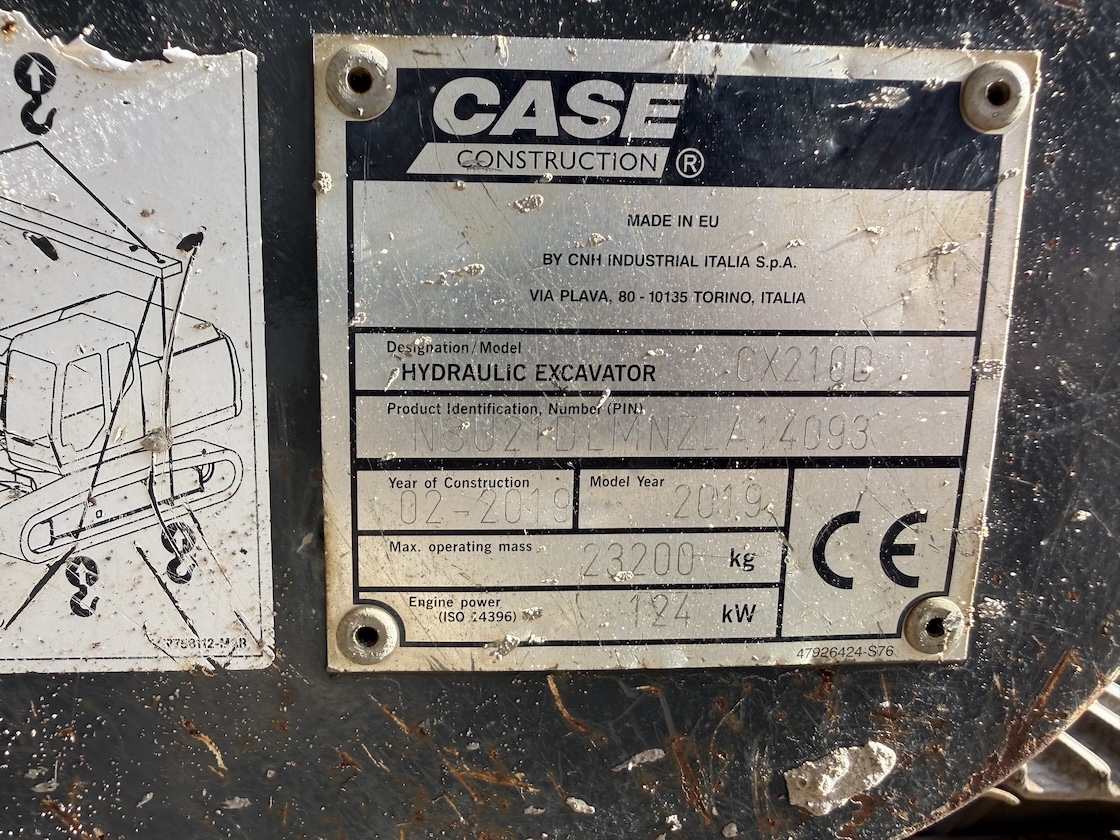 This Case CX210D is equipped with a 4 cilinder water cooled turbo charged Isuzu AR-4HK1X (124kW) diesel engine with 6.214 working hours on the service meter. With hydraulic quick hitch, hydraulics for hammer, teeth bucket, additional work lights, boxing ring, rear view camera, electric diesel pump, etc..