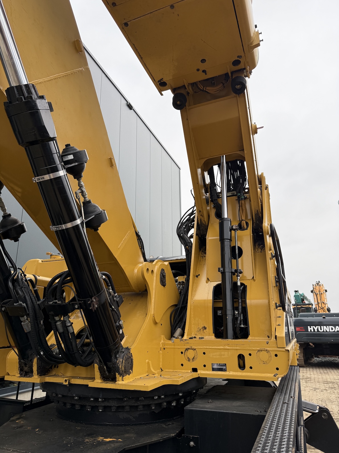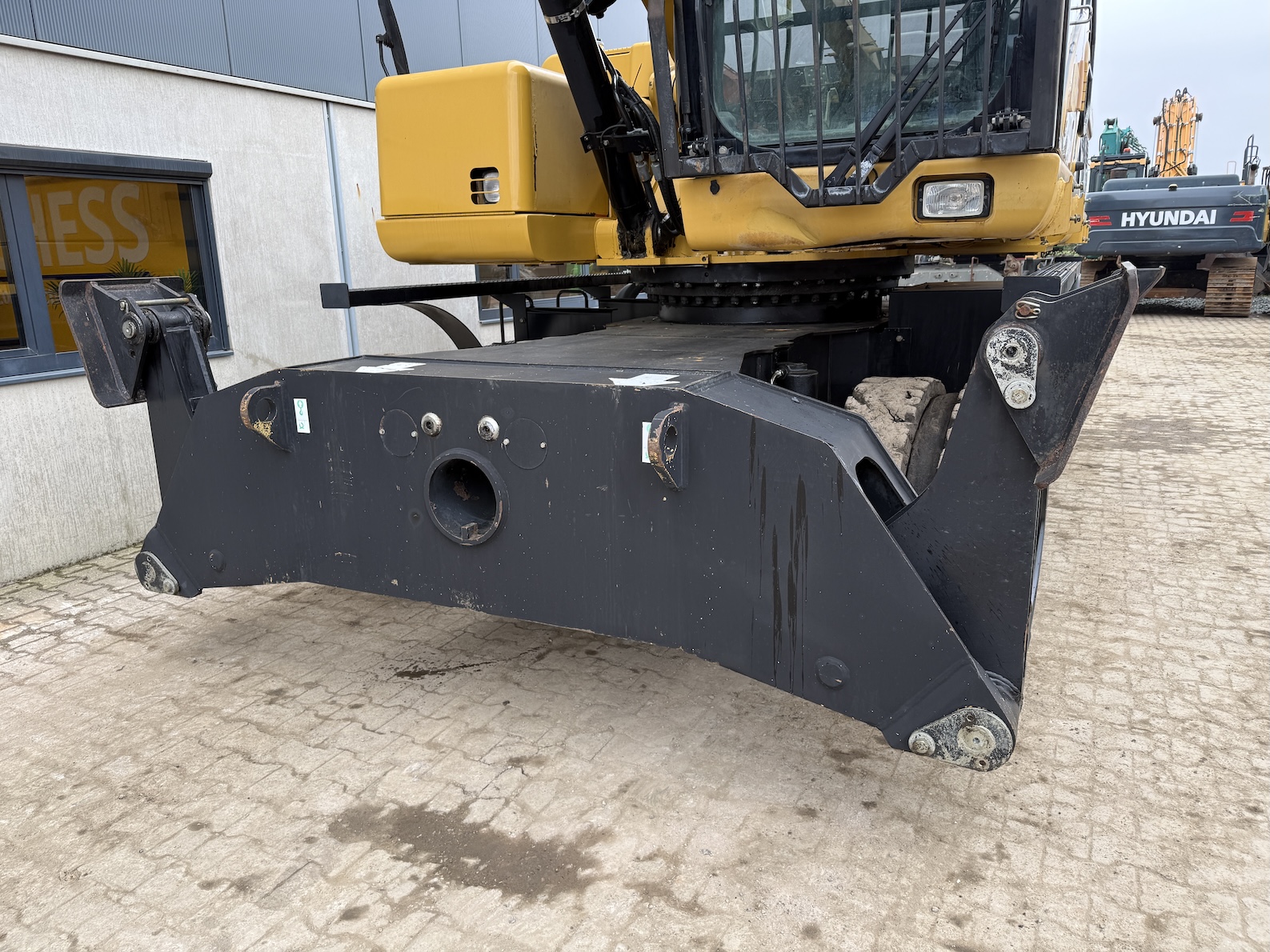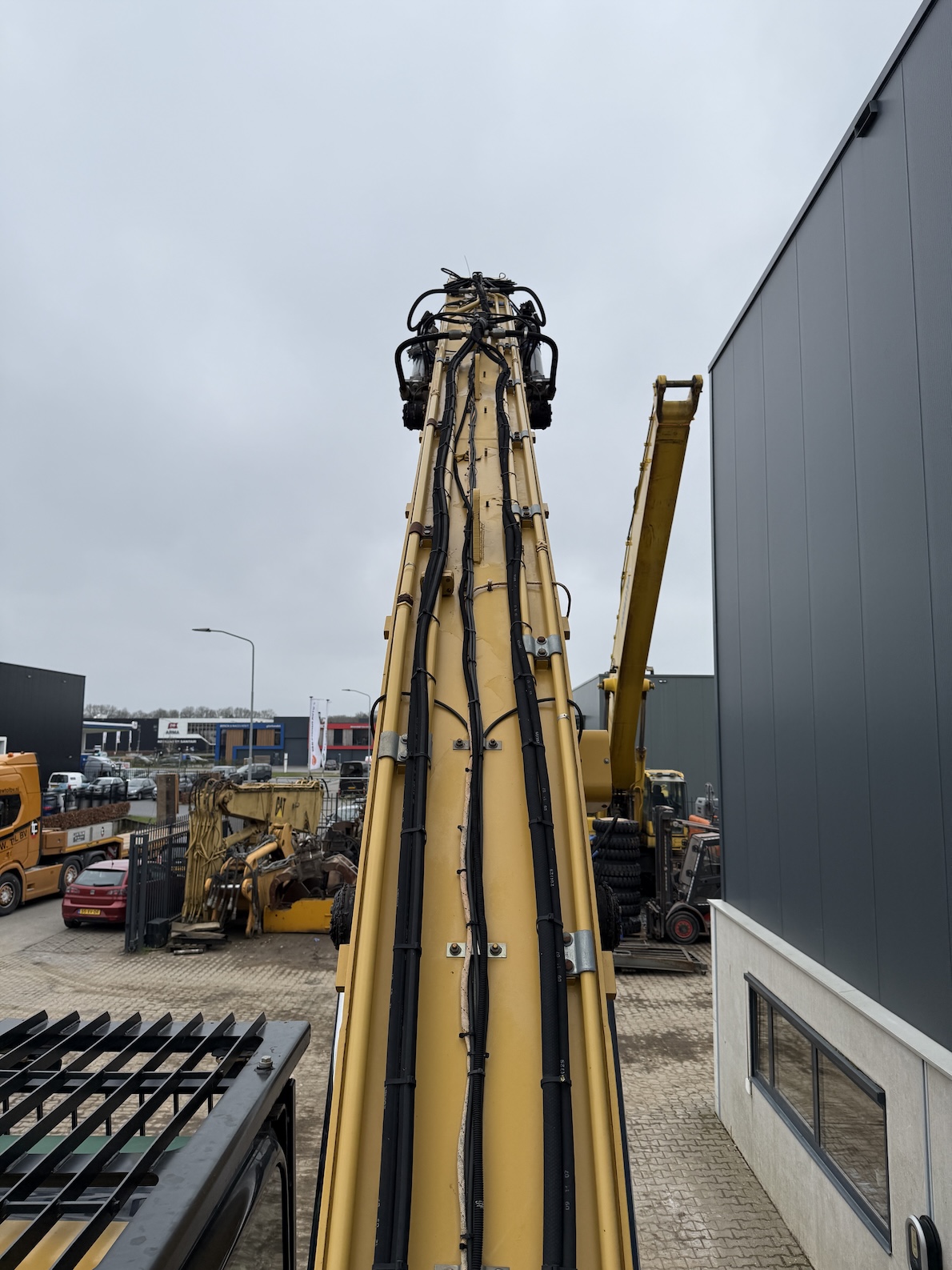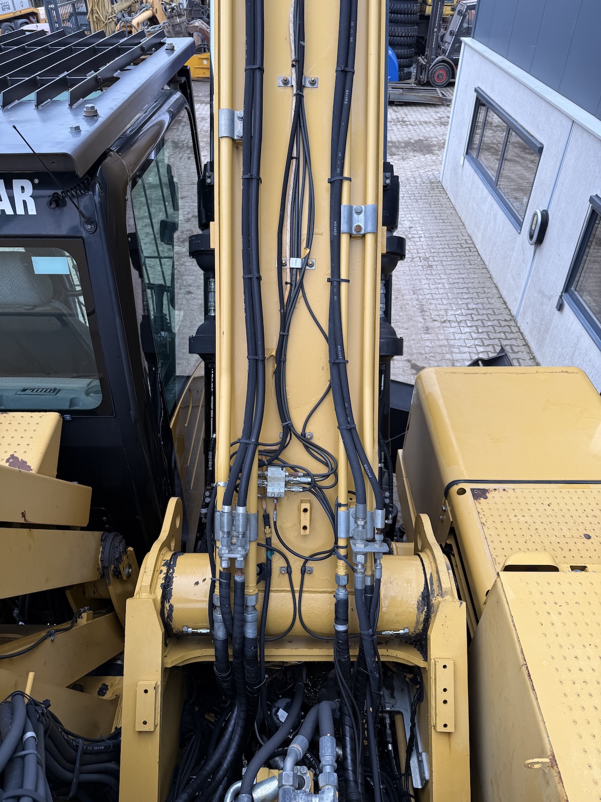 This Cat 325D-MH is equipped with a 6 cilinder water cooled turbo charged Cat 3126AT diesel engine (128kW) with 7843 working hours on the service meter. Boom length 8,85 meters and stick length being 7,42 meters, resulting in a reach of 15,67 meters without grab, height reach of 17,14 meters and debt of 6,42 meters. Full rubber tires, 4 outriggers, cabin protection, extra work lights, camera on the stick, additional books, airco, radio, central lubrication etc.