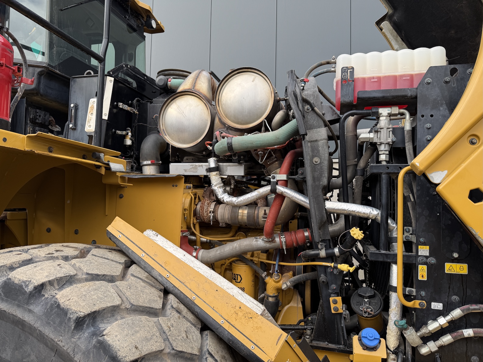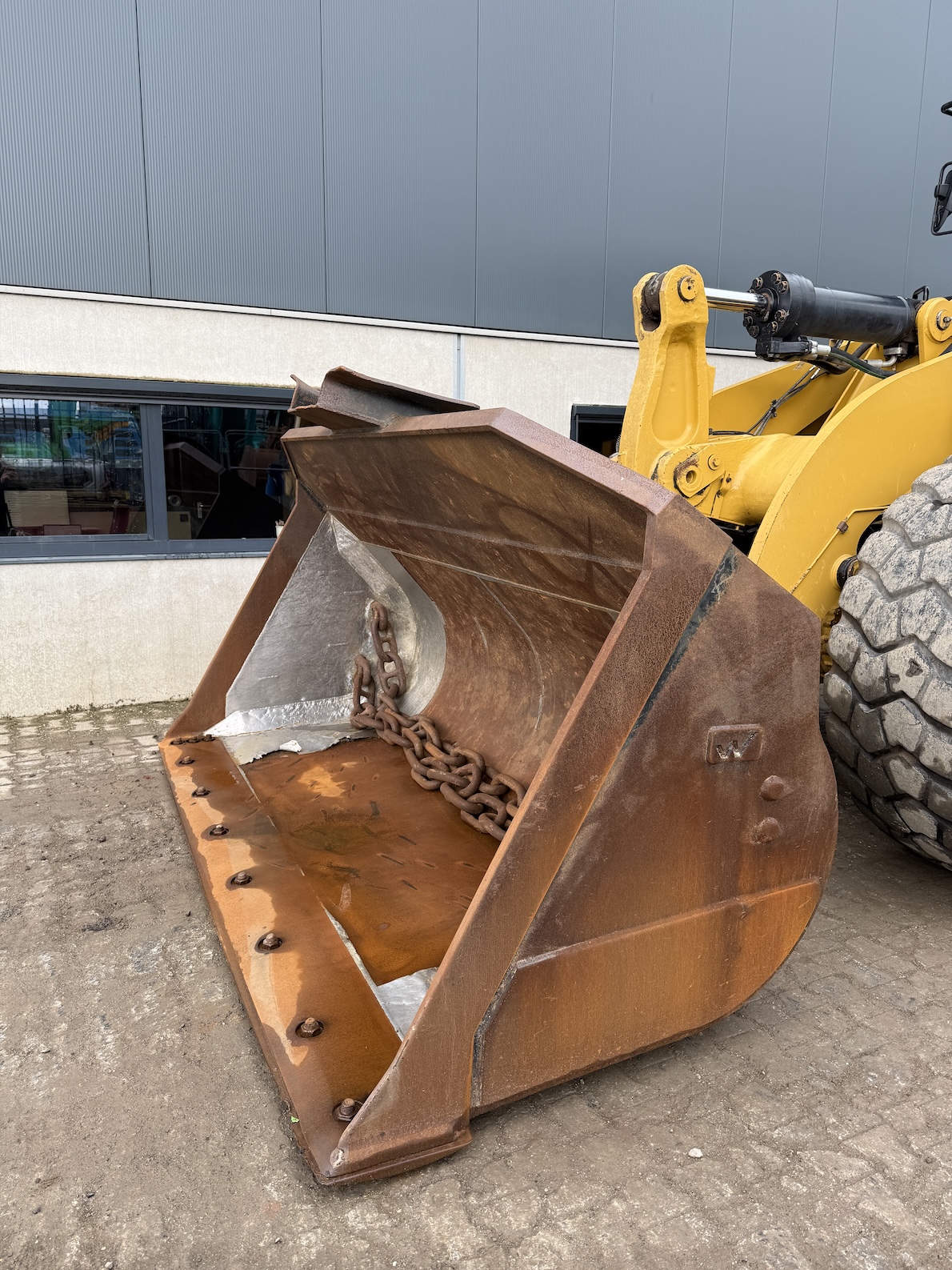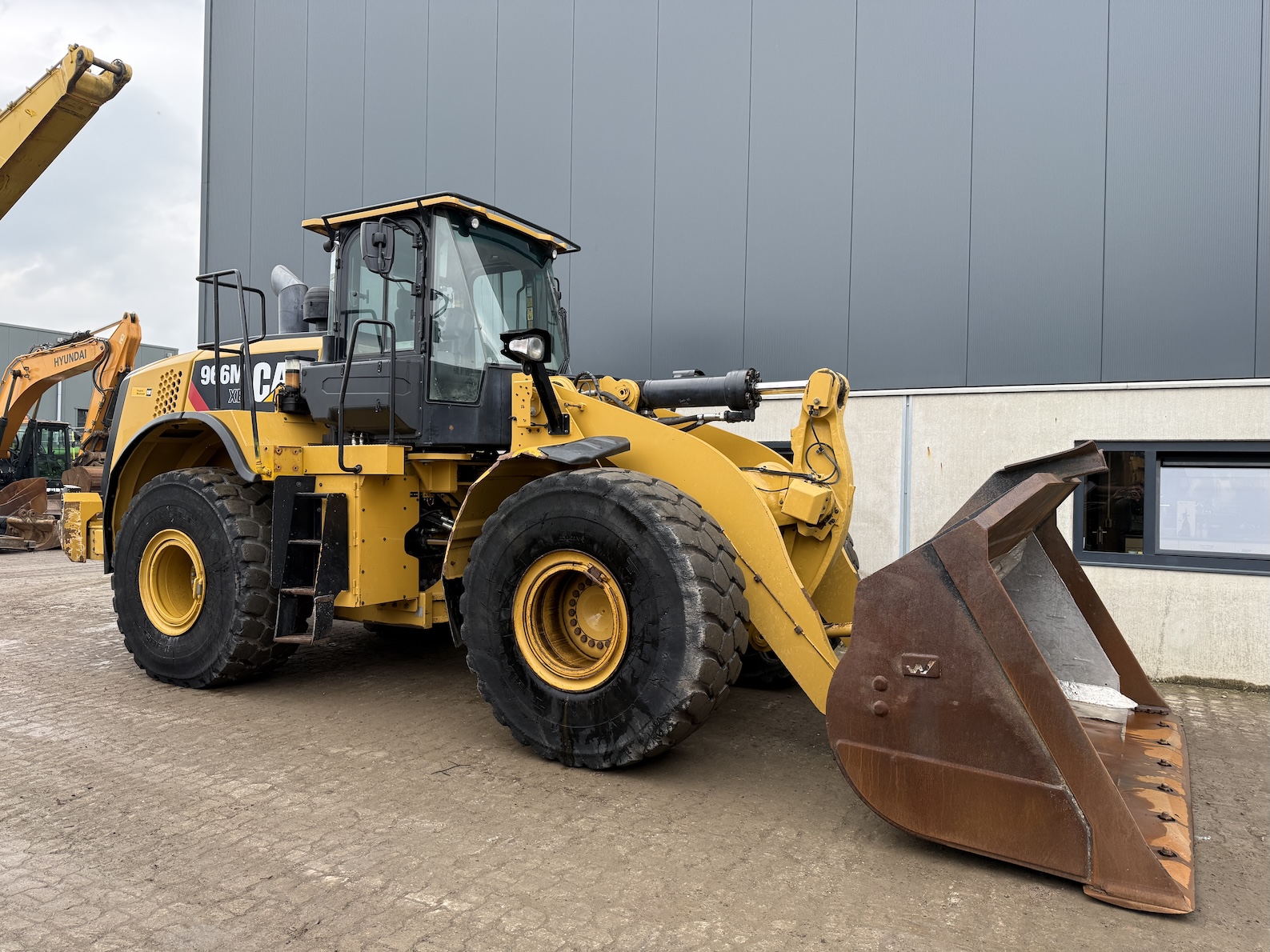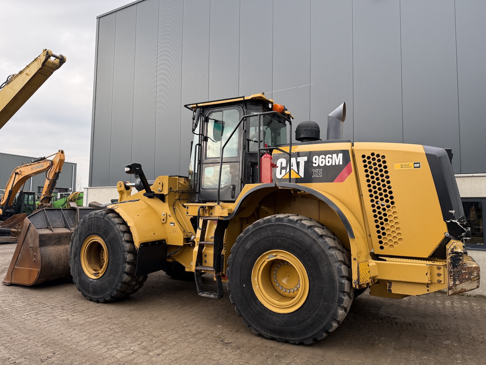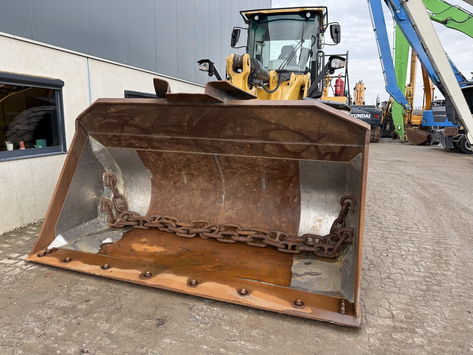 This Caterpillar 966MXE is equipped with a 6 cilinder water cooled turbo charged Caterpillar C9.3 diesel engine (250kW) with 15.024 working hours on the service meter. Bulk bucket, rear view camera, airco, radio, central lubrication, air suspension seat with heat control, additional work lights etc.