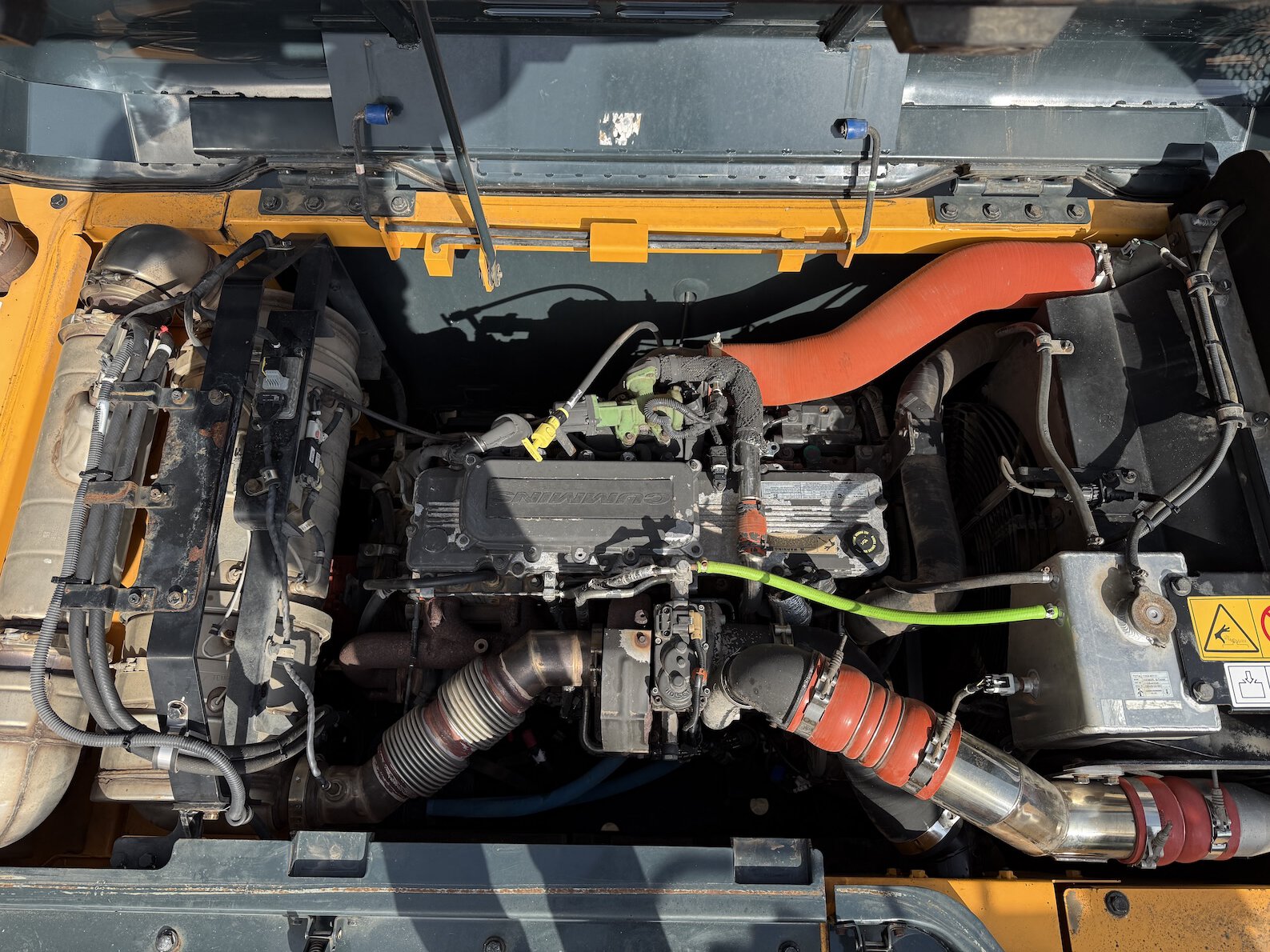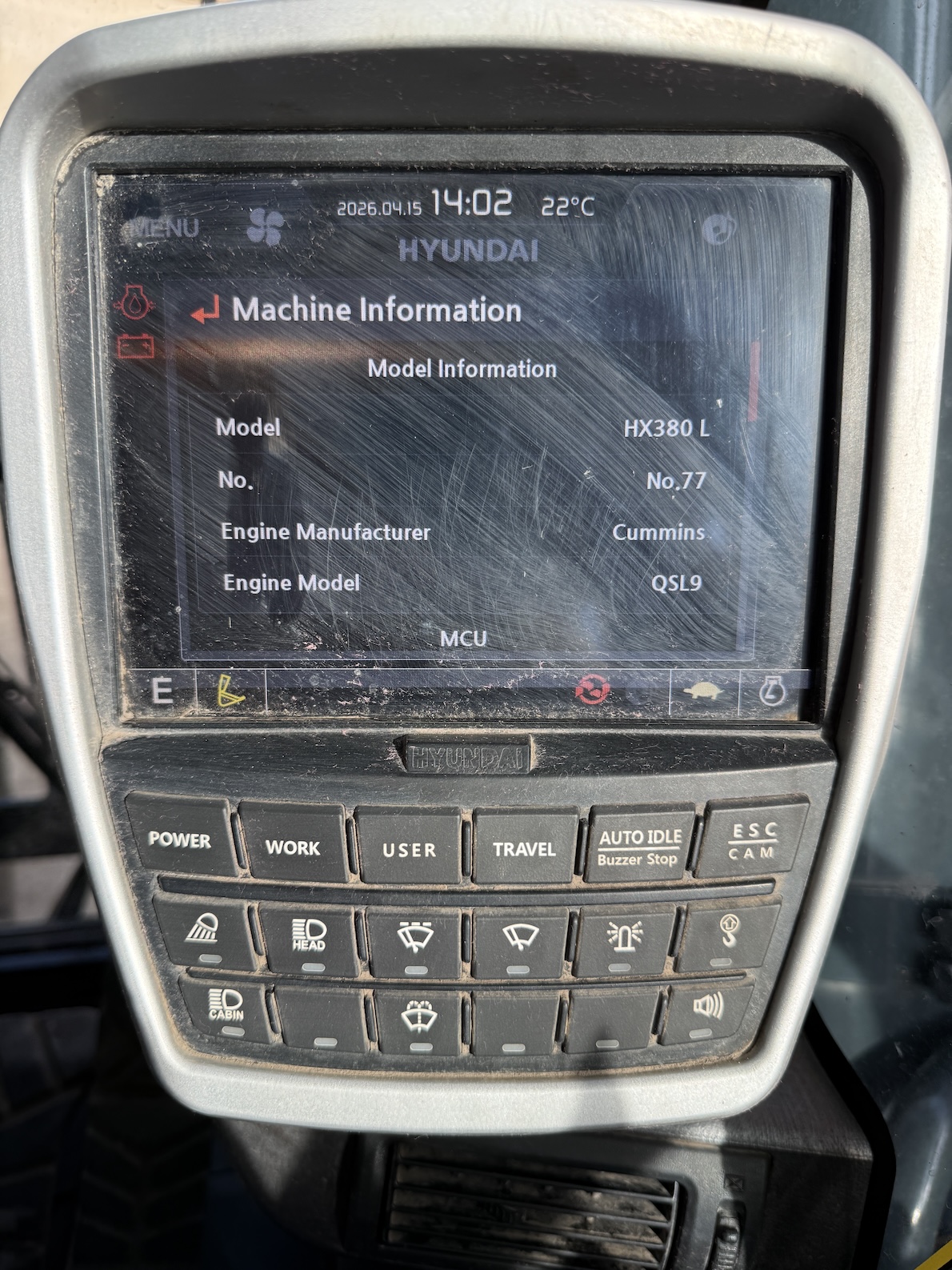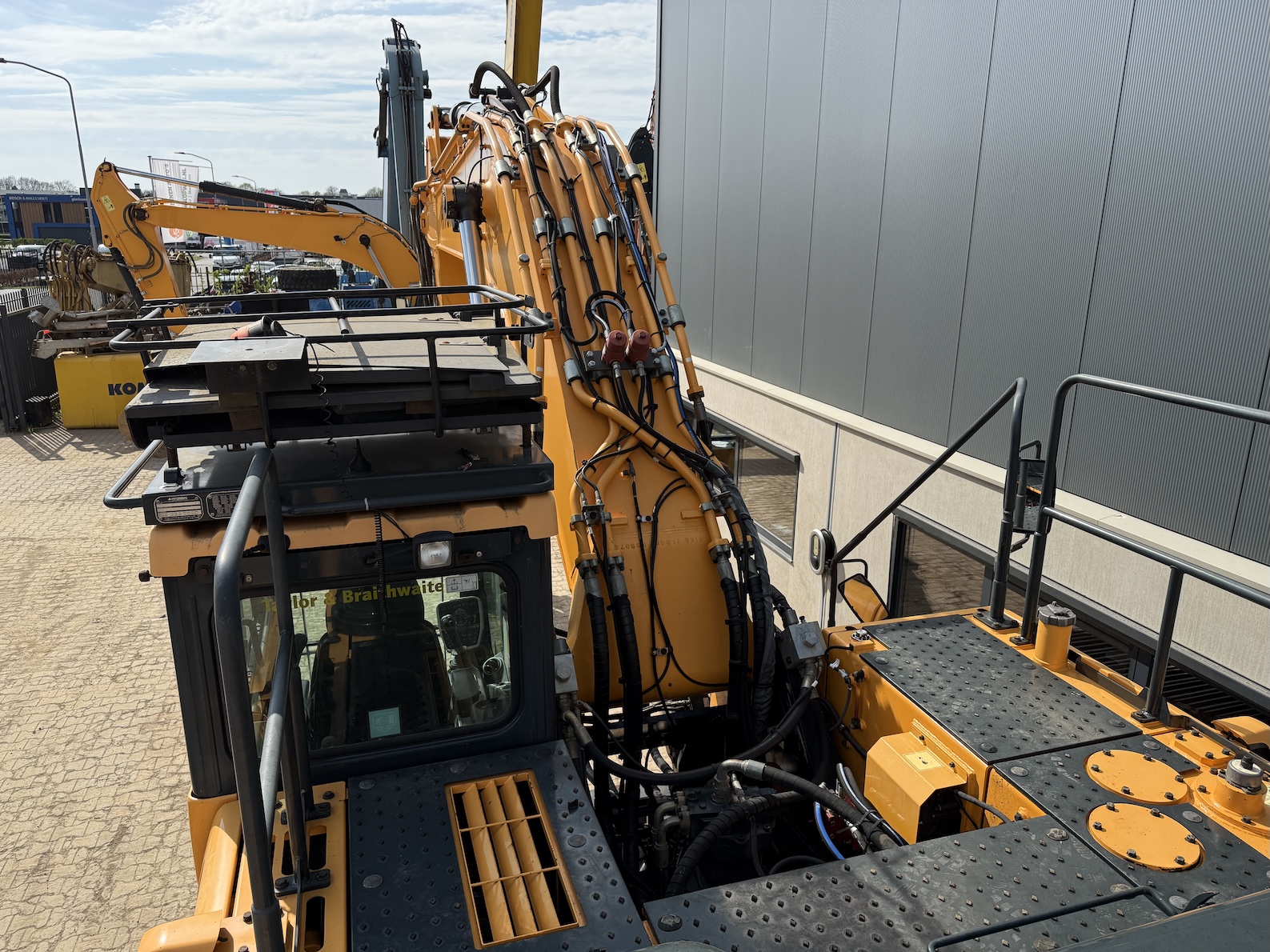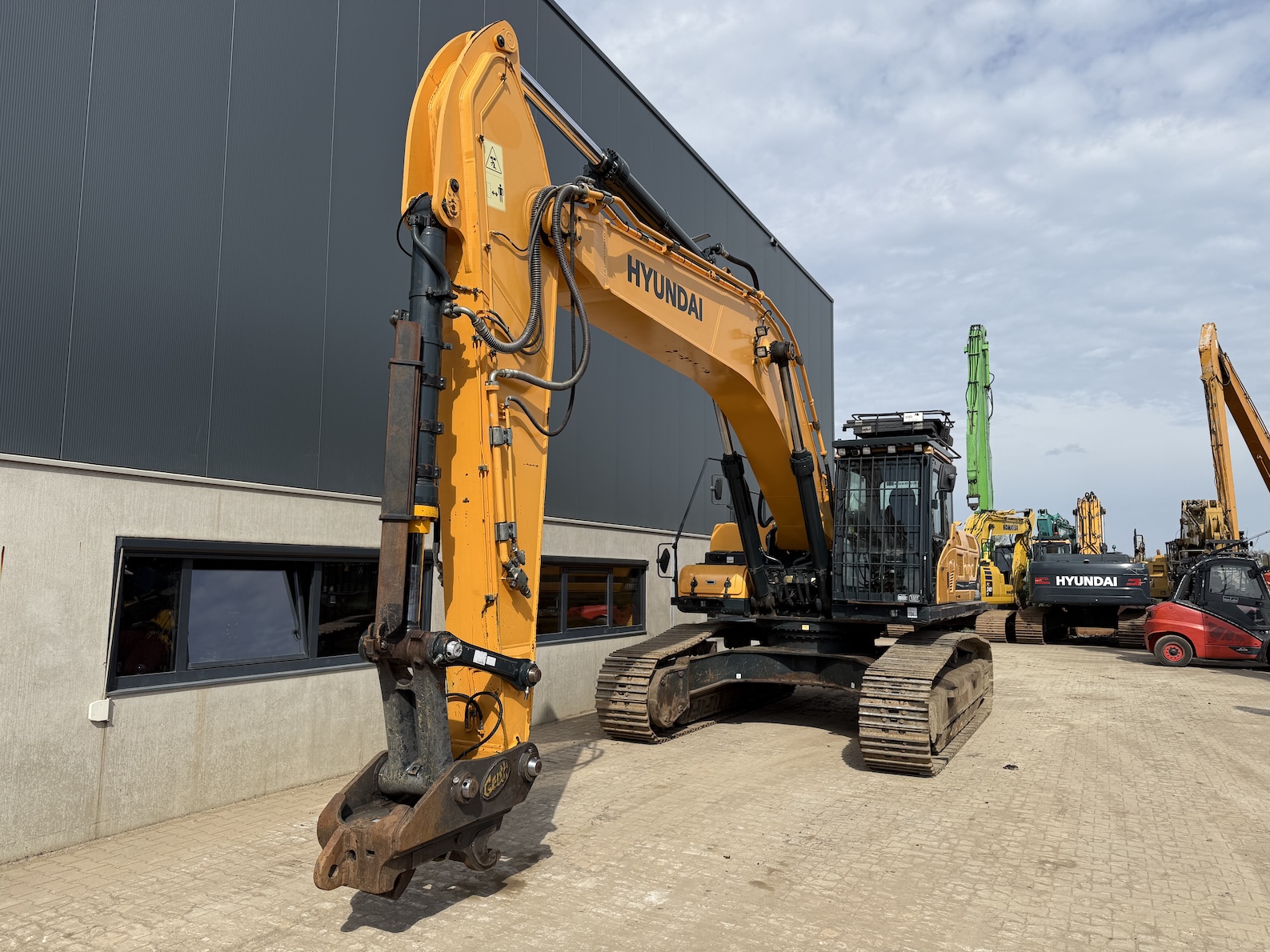 This Hyundai HX380L is equipped with a 6 cilinder water cooled turbo charged Cummins QSL9 (257kW) diesel engine with just 3.257 working hours on the service meter. Hydraulics for rotation and hammer function, cab guards, extra work lights, good undercarriage, all round camera system, hydraulic quick hitch, electric diesel pump, airco, radio etc..