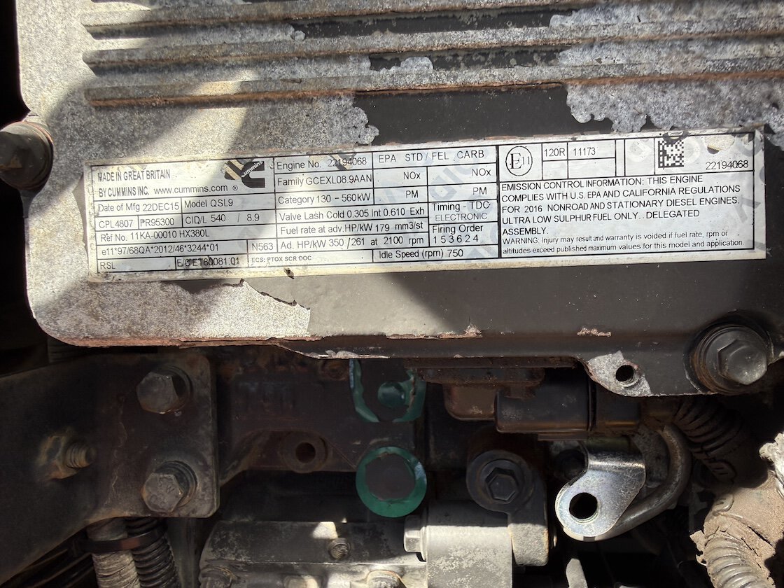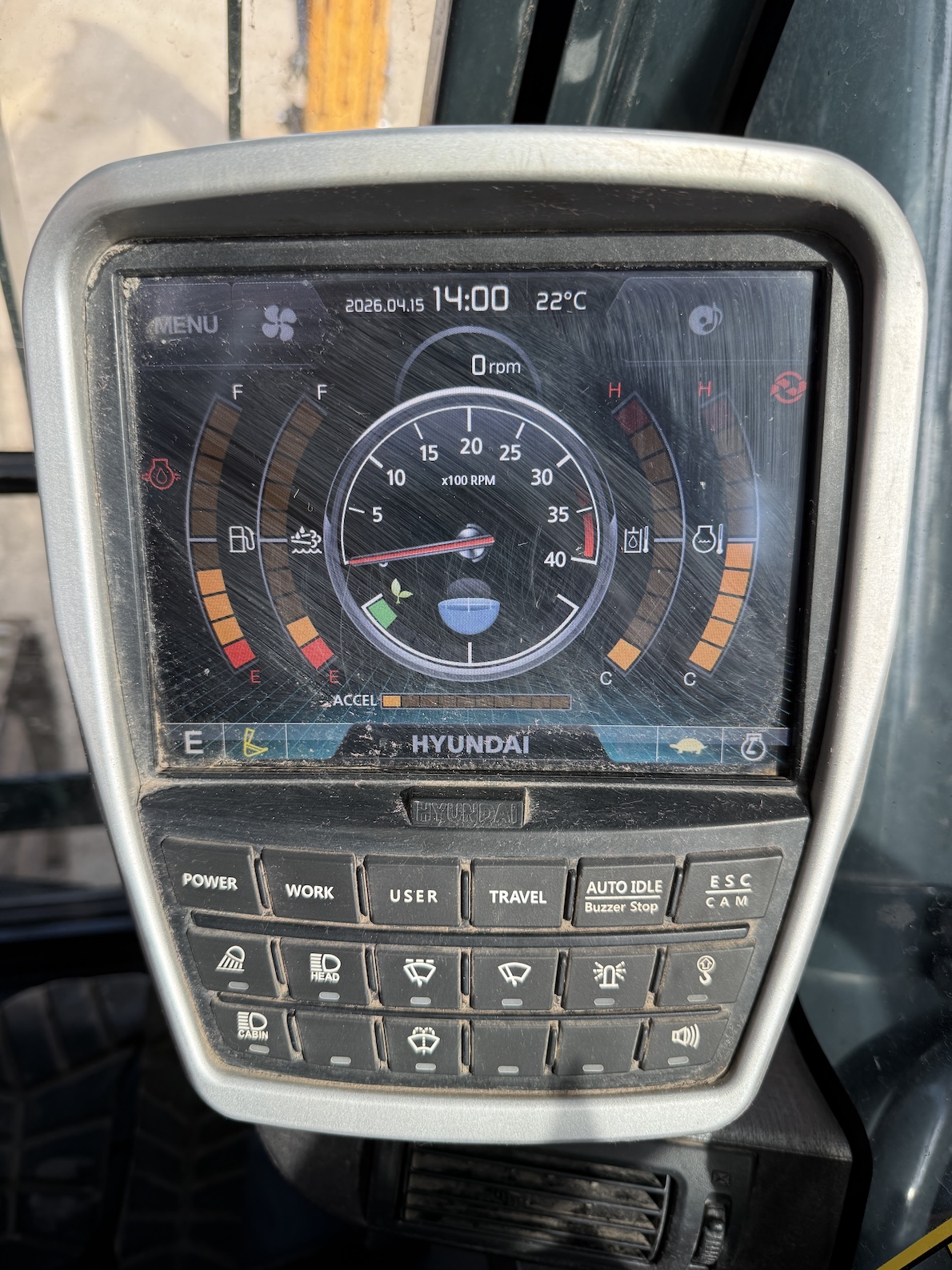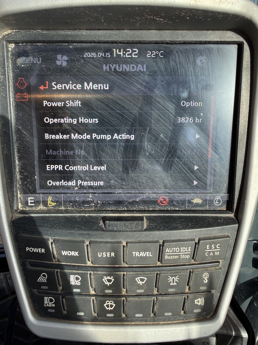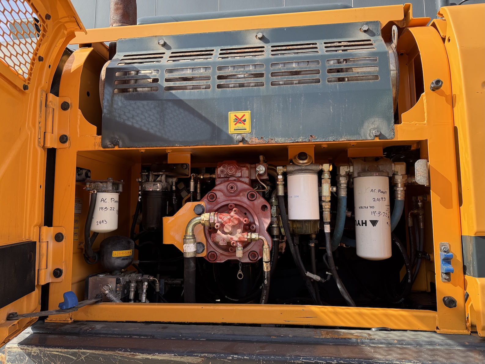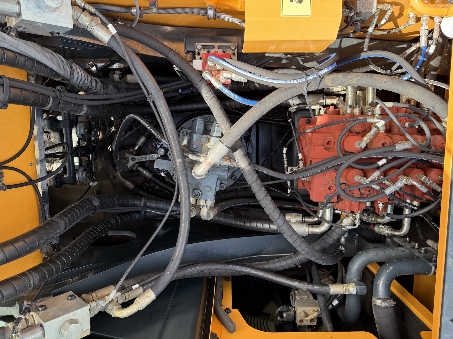 This Hyundai HX380L is equipped with a 6 cilinder water cooled turbo charged Cummins QSL9 (257kW) diesel engine with just 3.257 working hours on the service meter. Hydraulics for rotation and hammer function, cab guards, extra work lights, good undercarriage, all round camera system, hydraulic quick hitch, electric diesel pump, airco, radio etc..