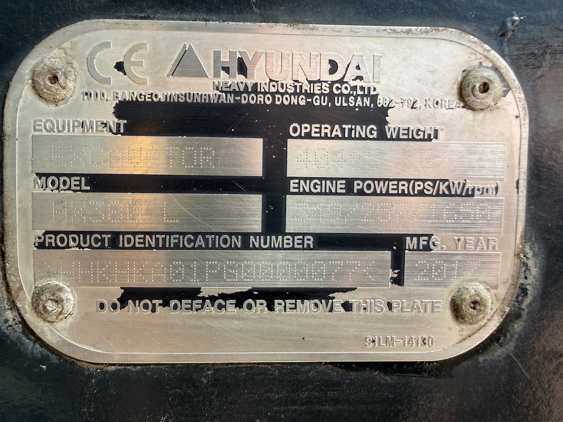 Hyundai HX380L with excellent undercarriage! Ready for its next job. For more information please contact us.