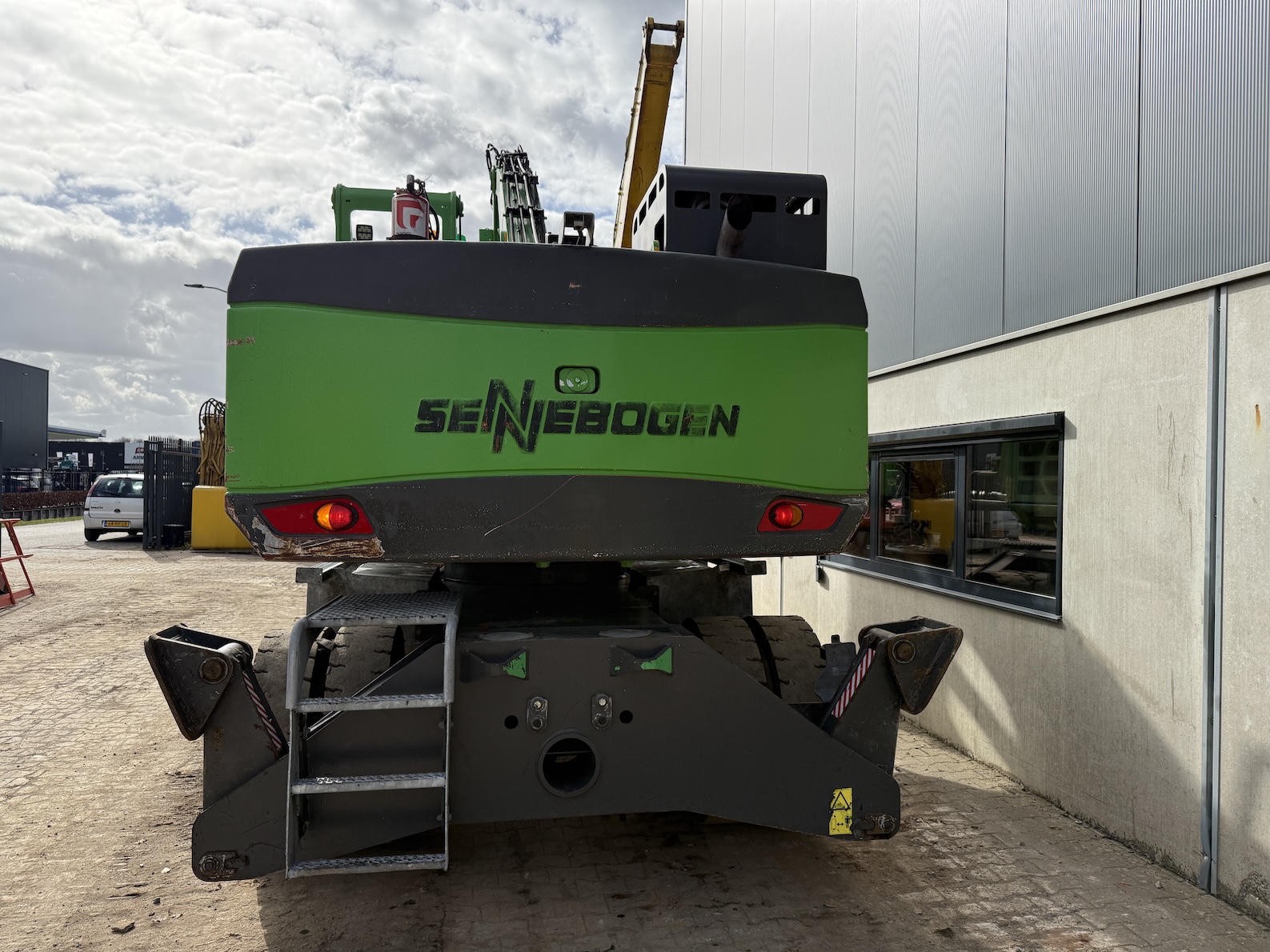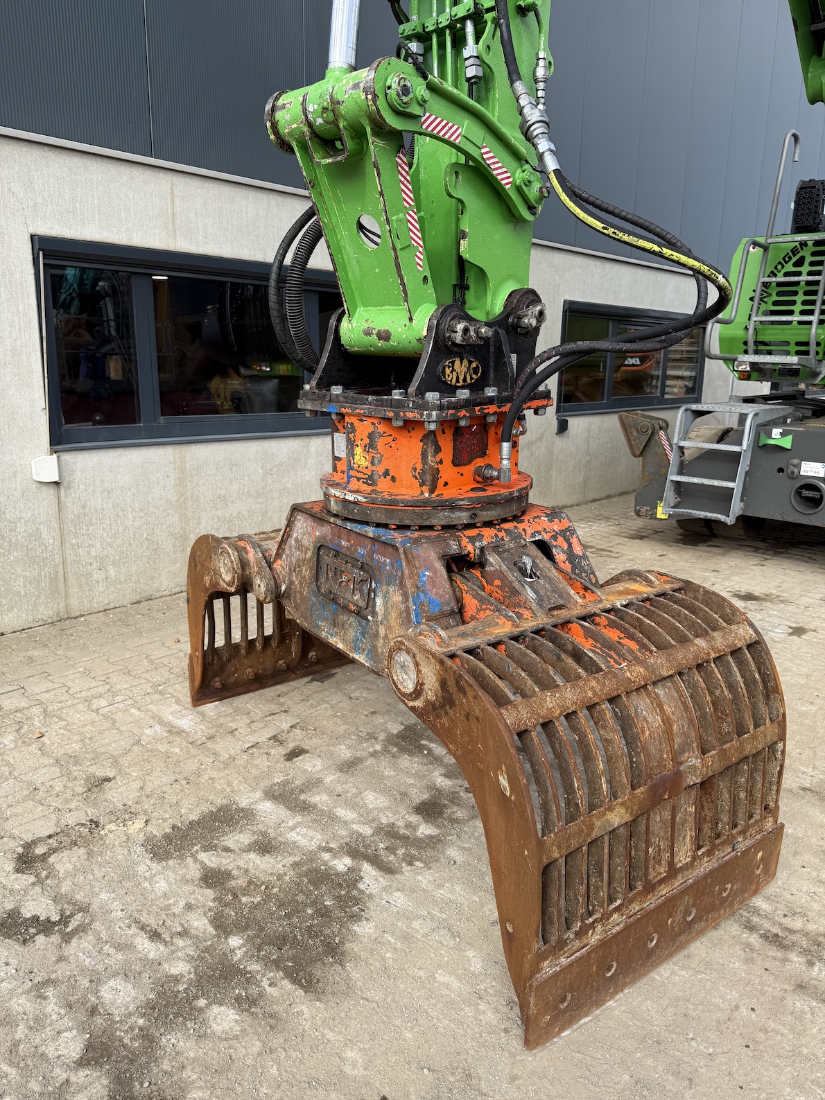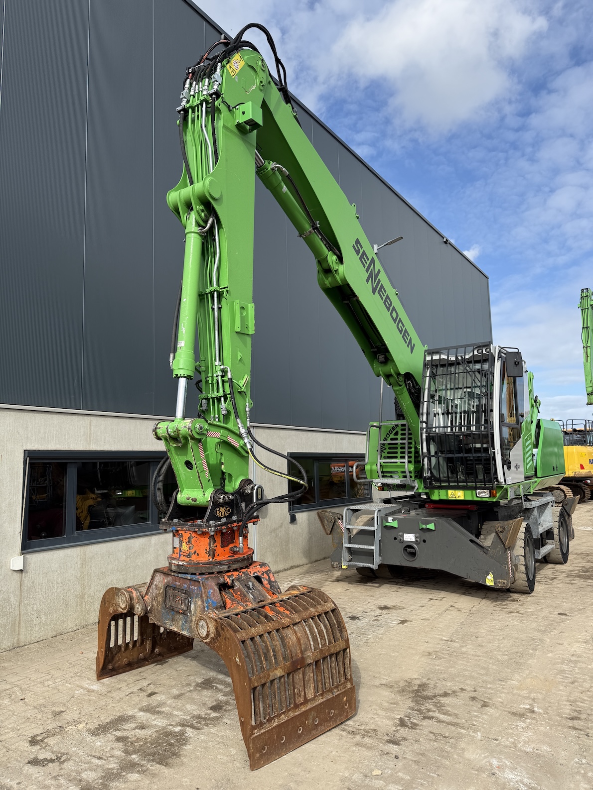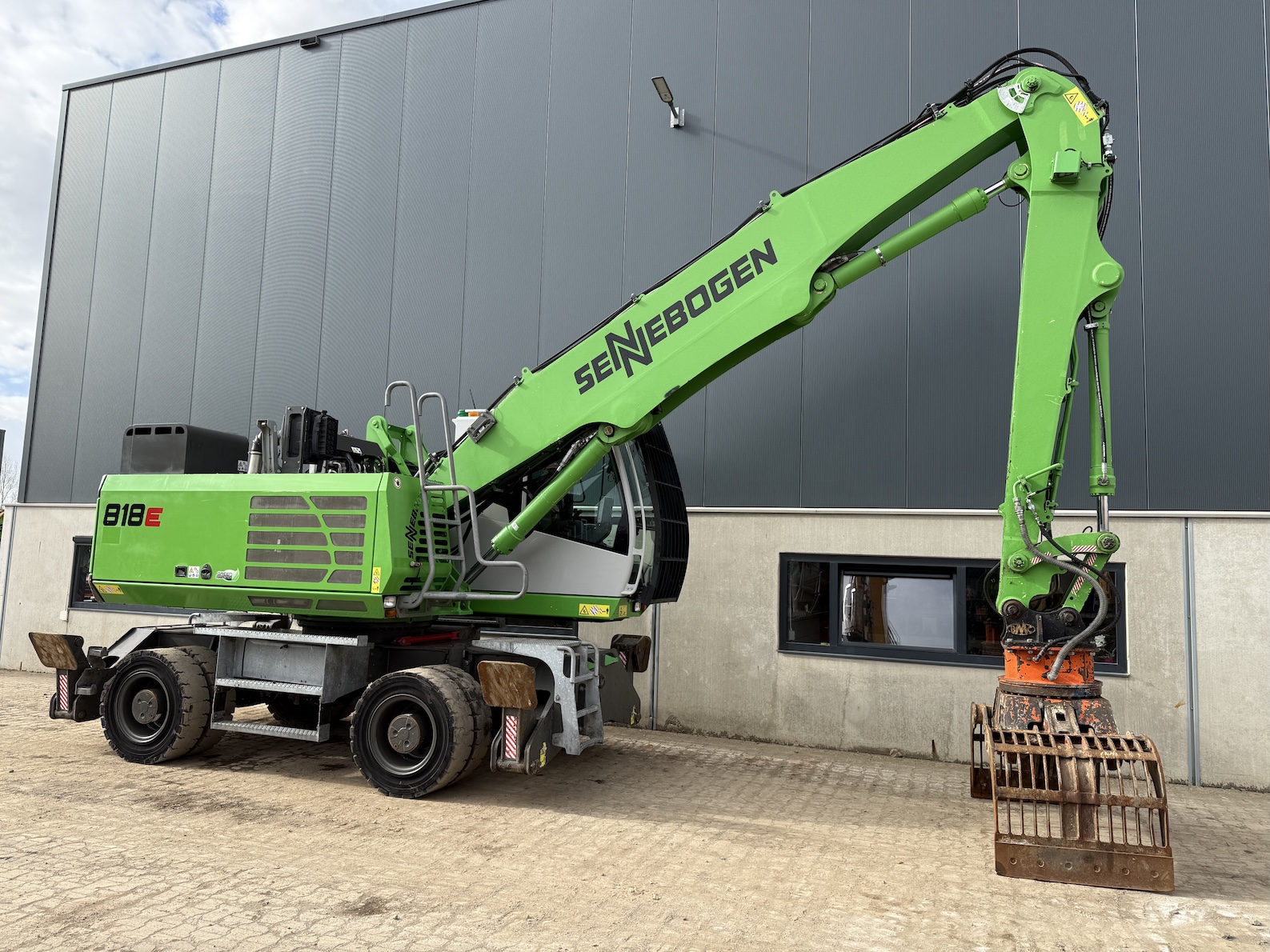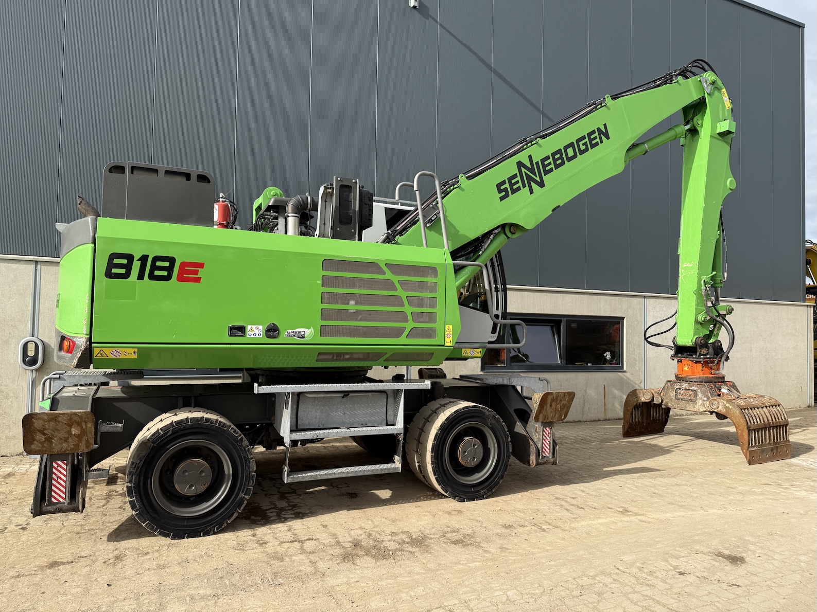 This Sennebogen 818 E material handler is equipped with a 4 cilinder water cooled turbo charged Cummins QSB4.5 (97kW) diesel engine with 9665 working hours on the service meter. NPK DG-20 demolition grab from 2018, cabin protection, full rubber tires, central lubrication, CE document, additional books, rear and side view camera (can be fixed on request), GKD height limiting system, Fireward automatic fire suppression, airco, radio etc.