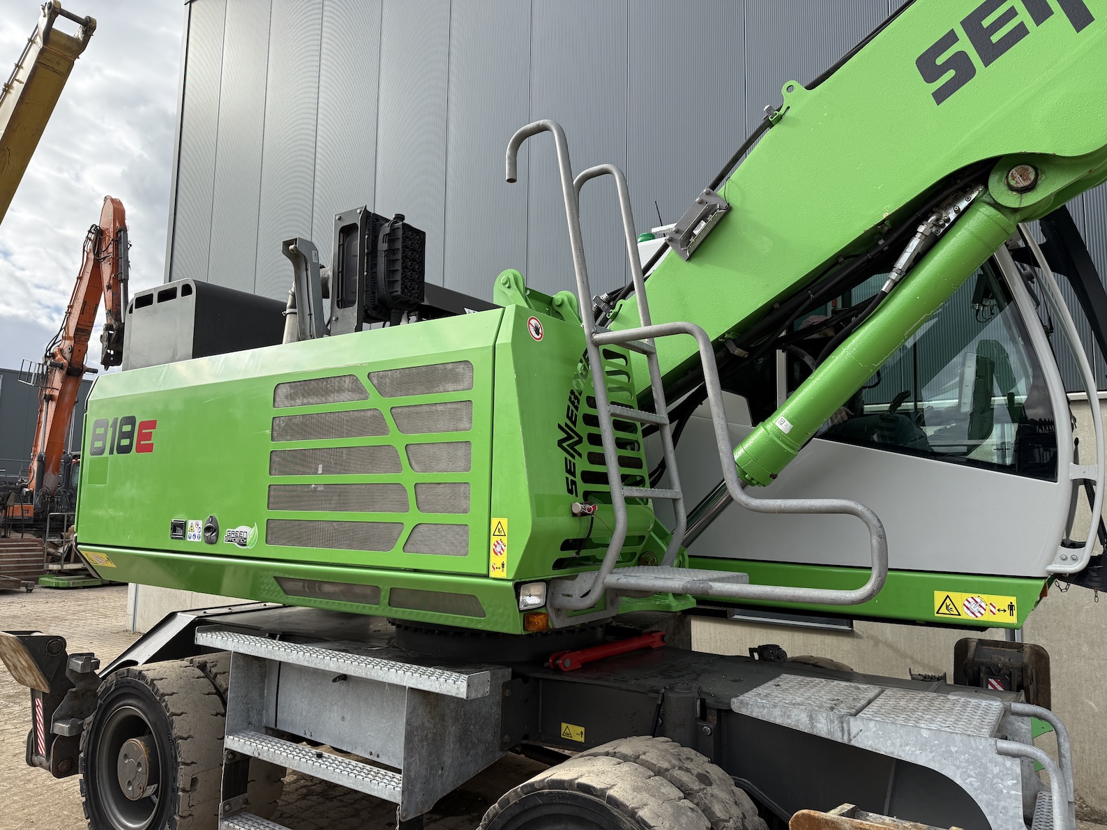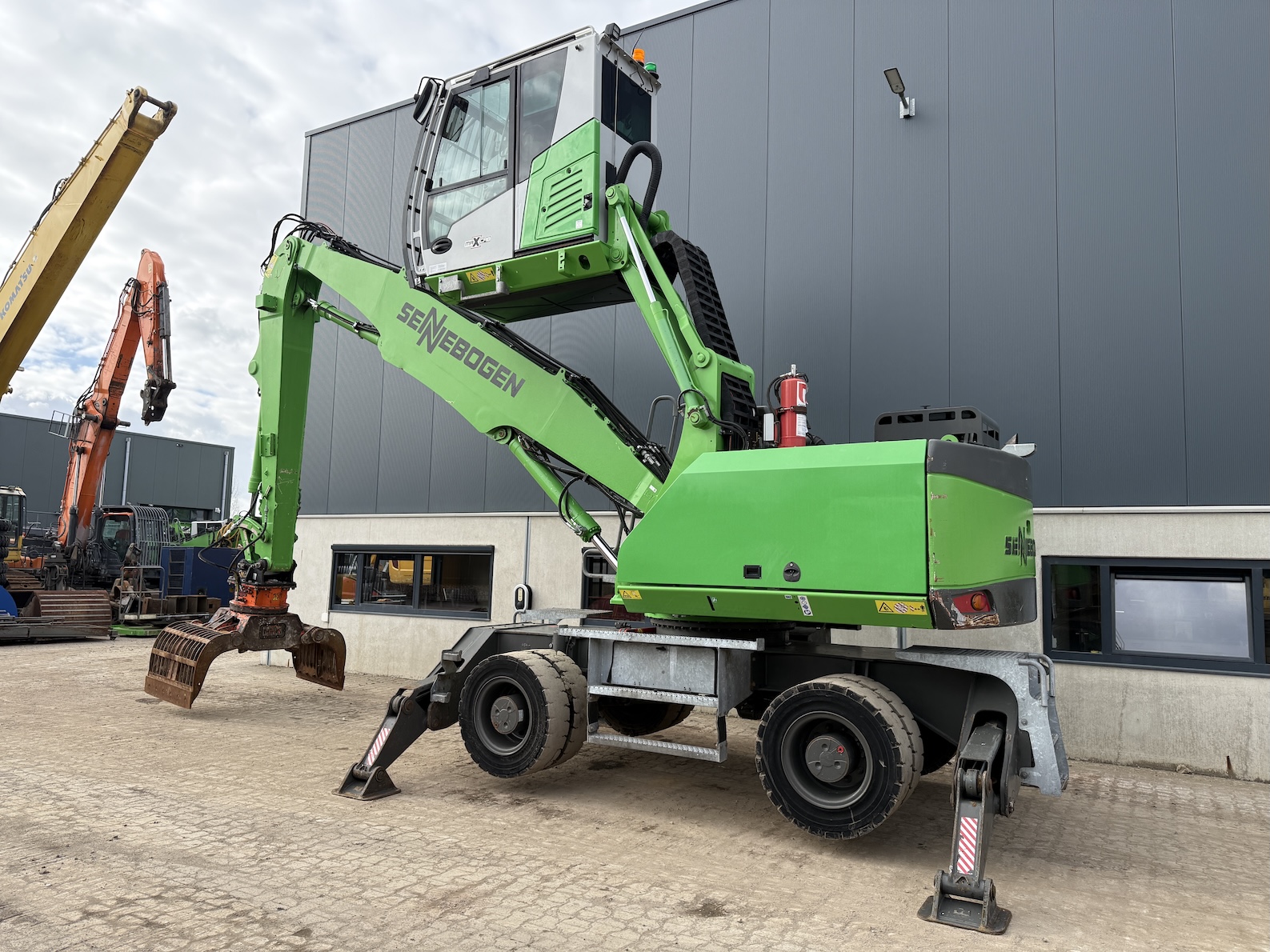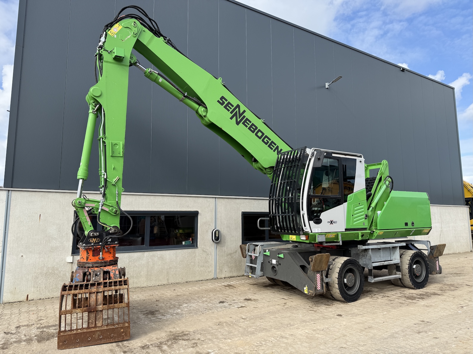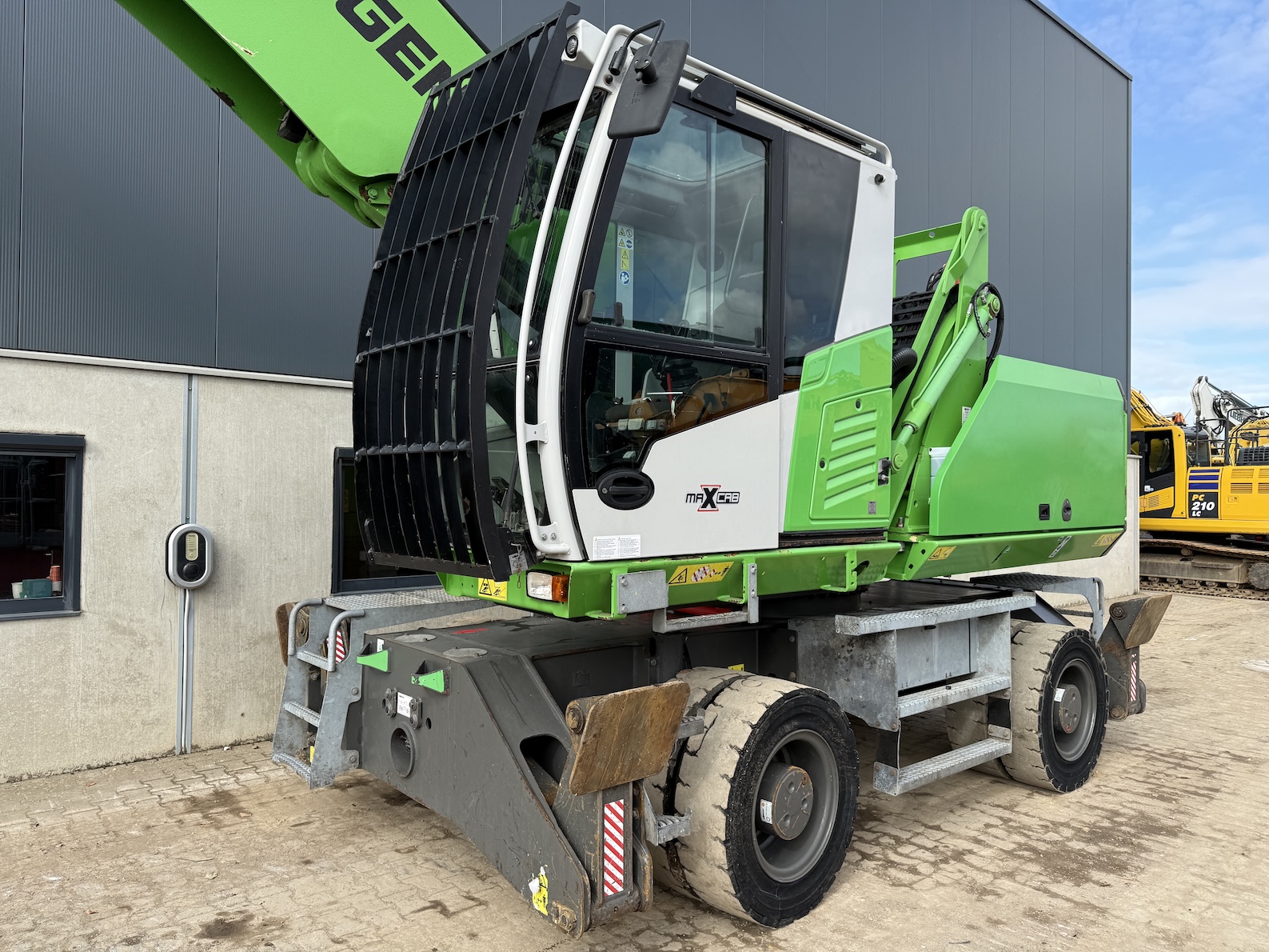 This Sennebogen 818 E material handler is equipped with a 4 cilinder water cooled turbo charged Cummins QSB4.5 (97kW) diesel engine with 9665 working hours on the service meter. NPK DG-20 demolition grab from 2018, cabin protection, full rubber tires, central lubrication, CE document, additional books, rear and side view camera (can be fixed on request), GKD height limiting system, Fireward automatic fire suppression, airco, radio etc.