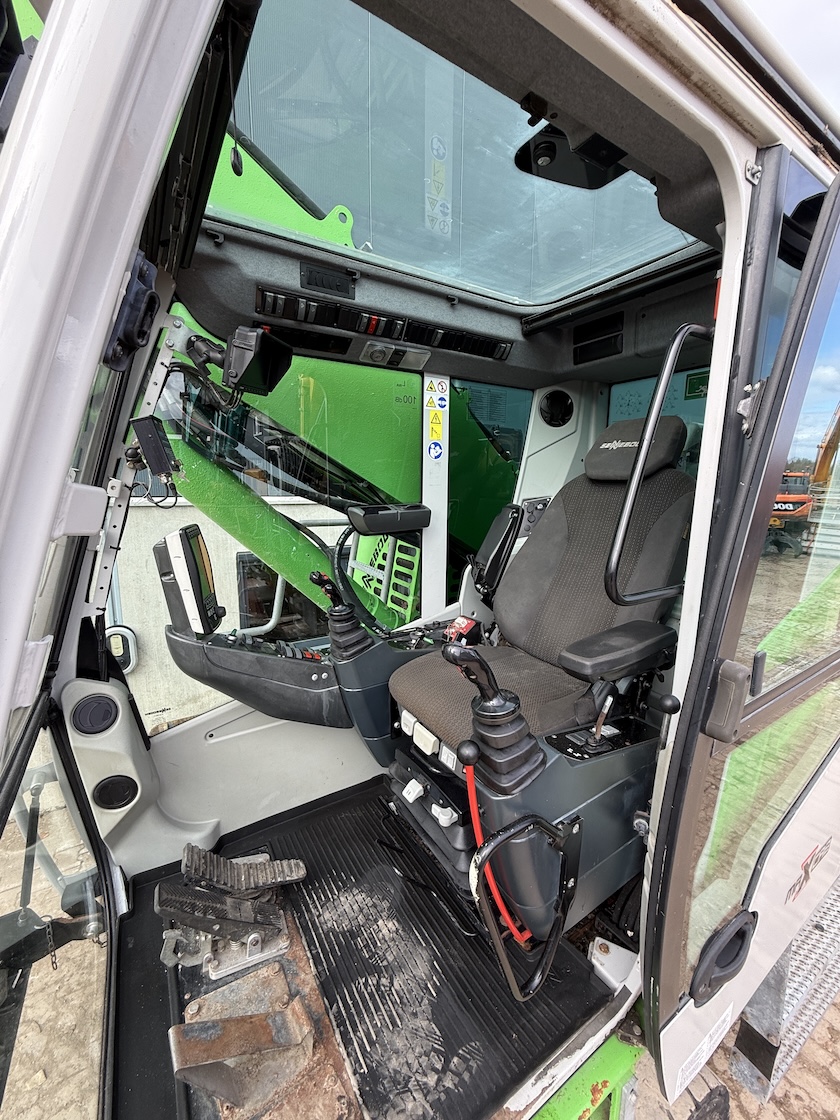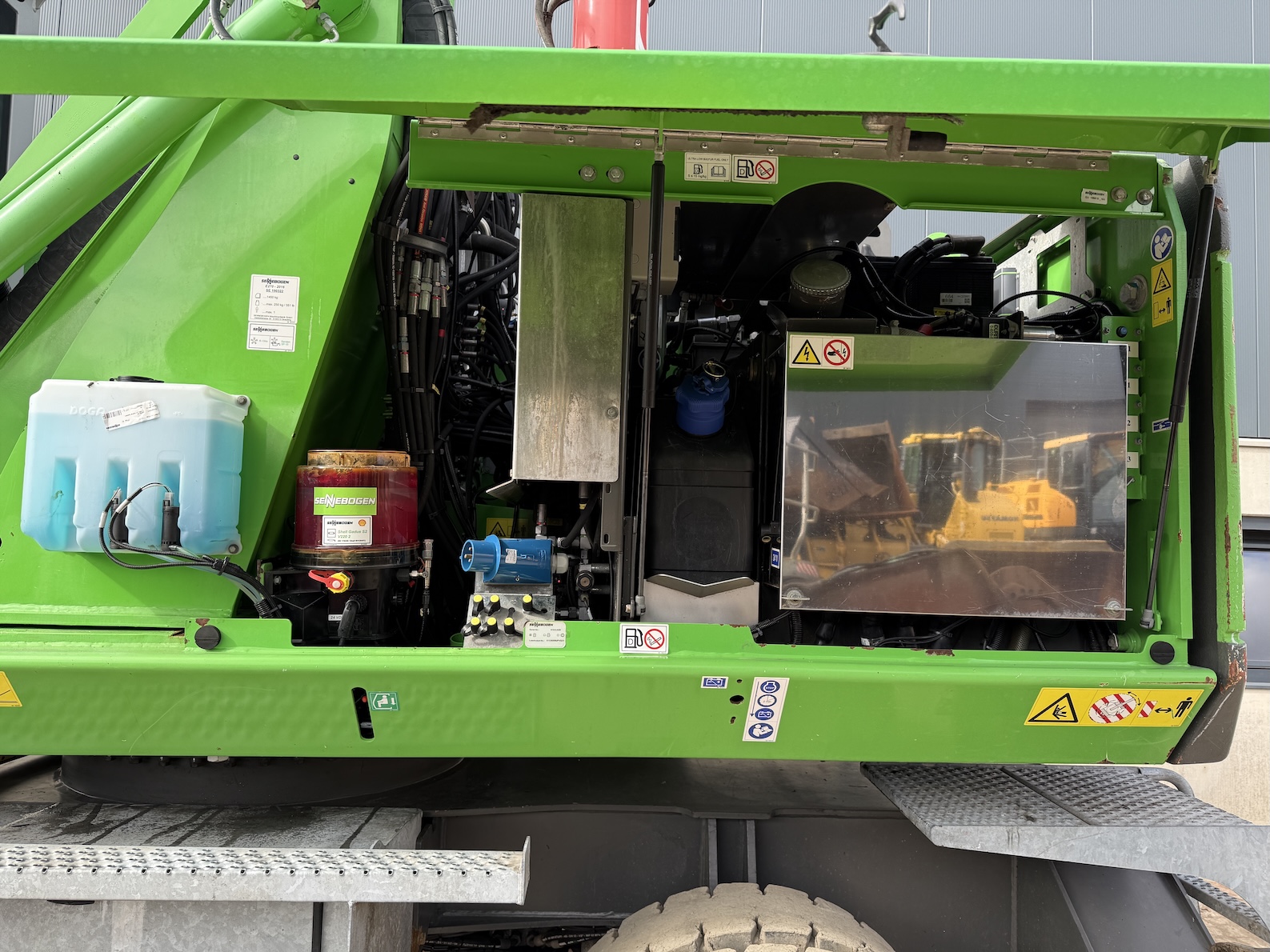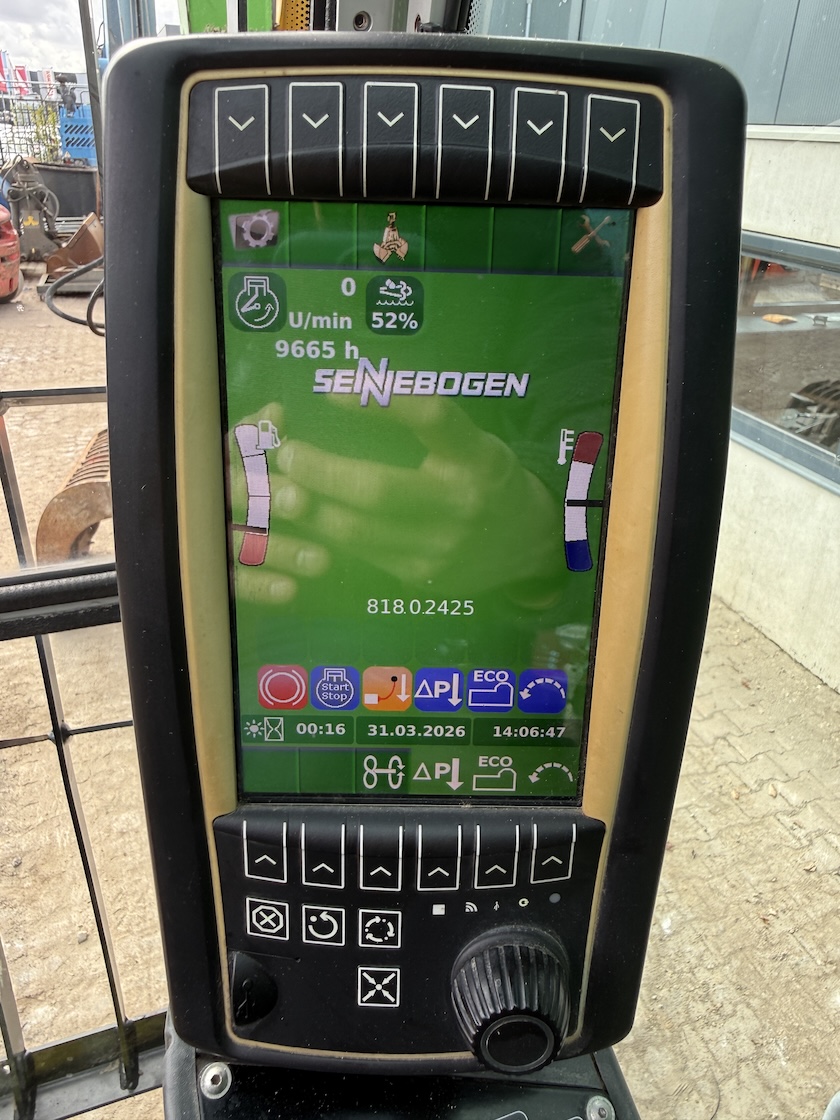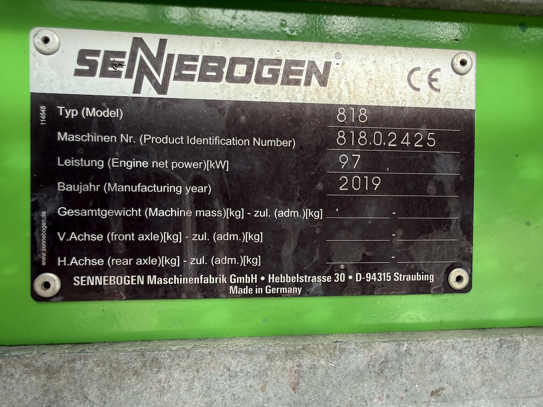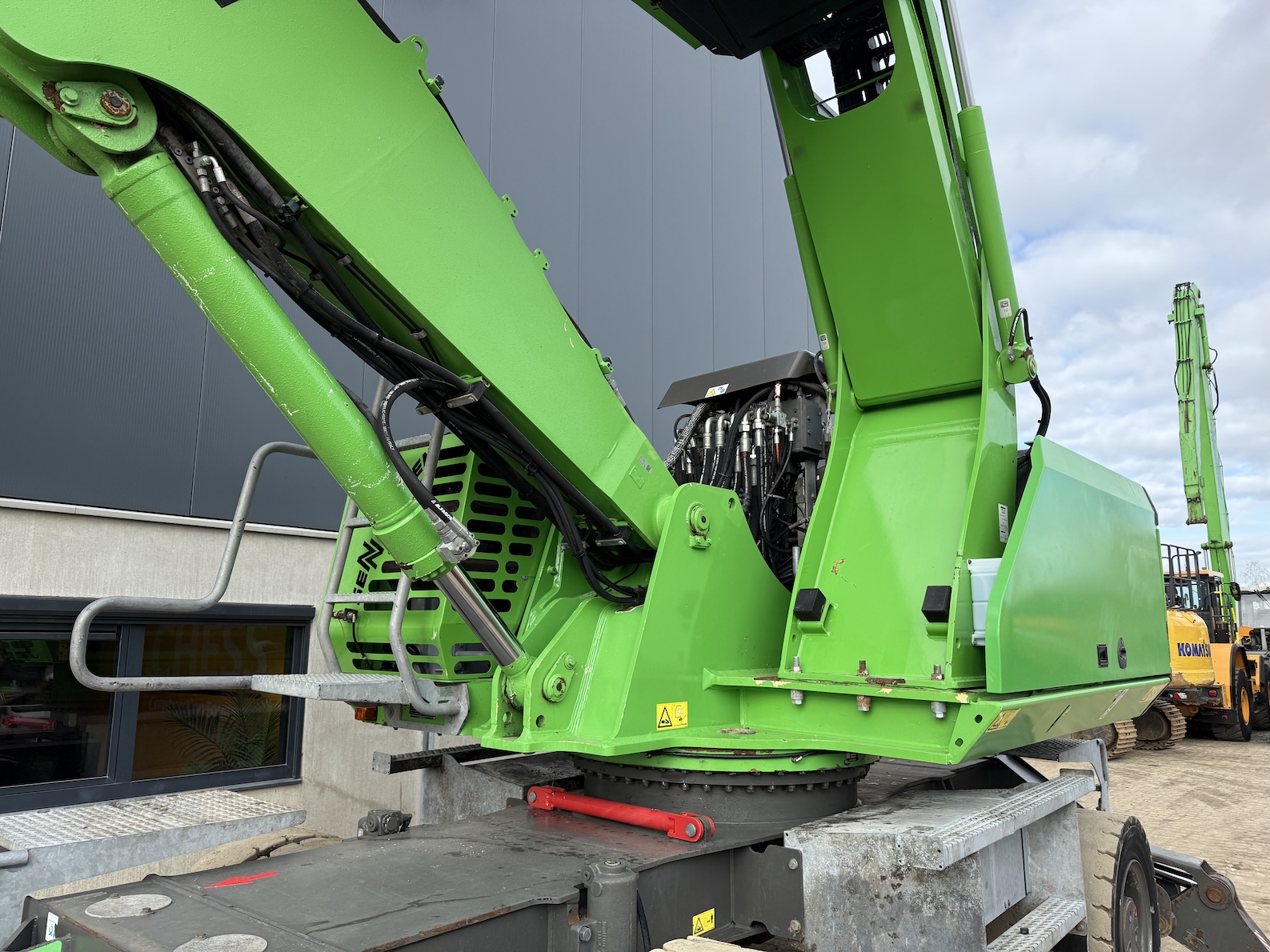 This Sennebogen 818 E material handler is equipped with a 4 cilinder water cooled turbo charged Cummins QSB4.5 (97kW) diesel engine with 9665 working hours on the service meter. NPK DG-20 demolition grab from 2018, cabin protection, full rubber tires, central lubrication, CE document, additional books, rear and side view camera (can be fixed on request), GKD height limiting system, Fireward automatic fire suppression, airco, radio etc.