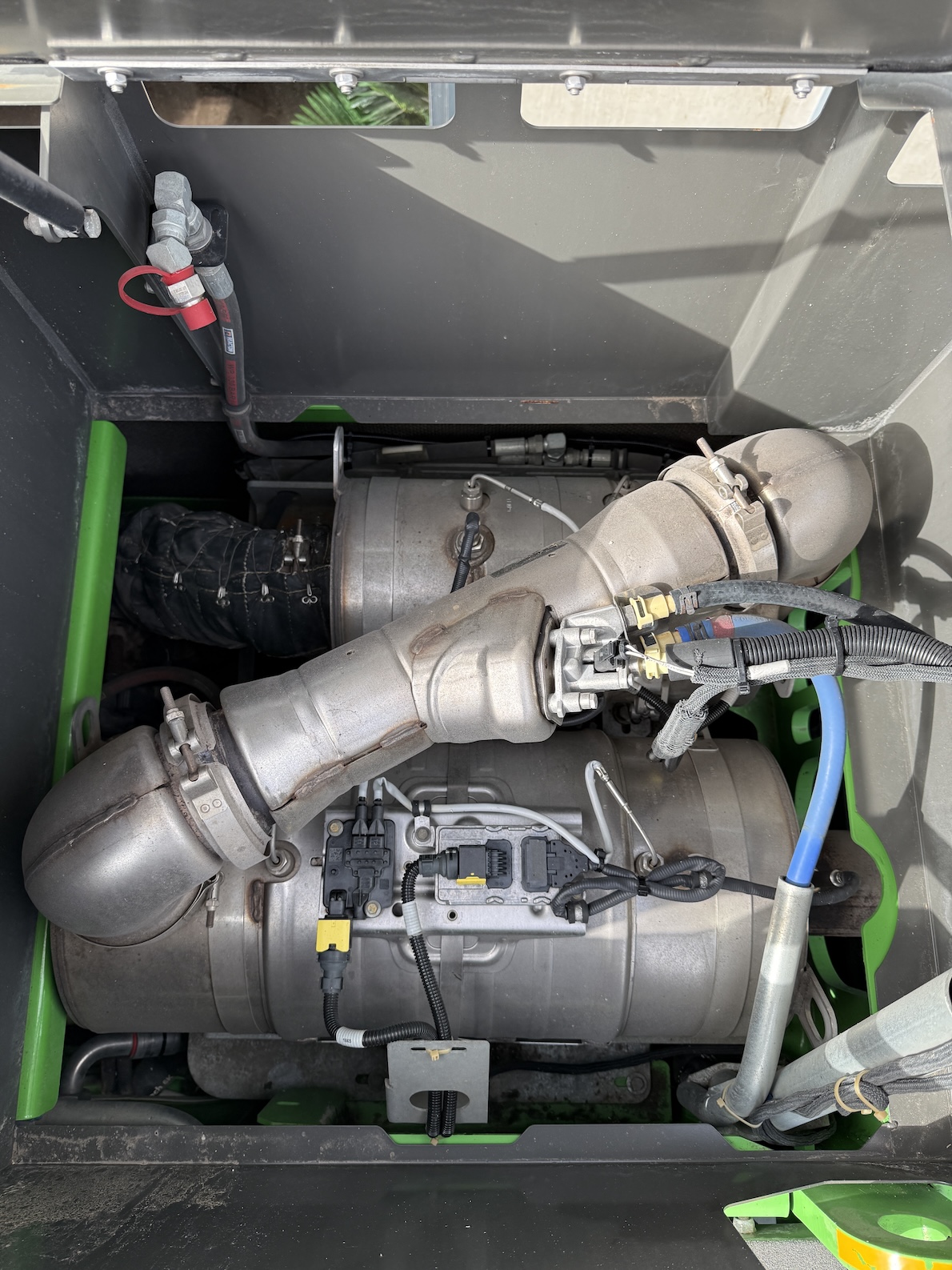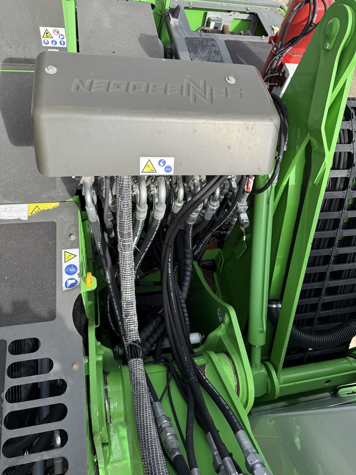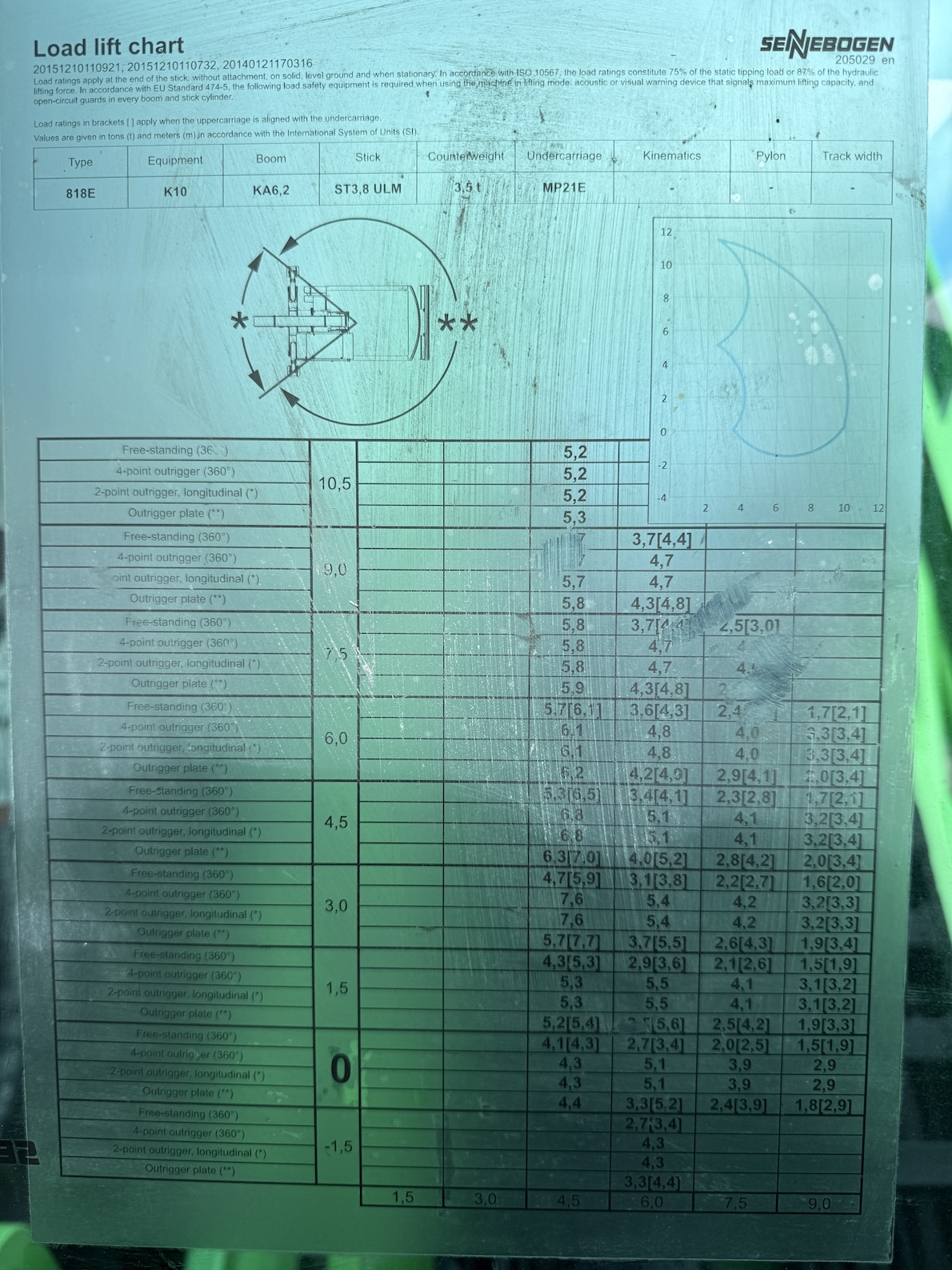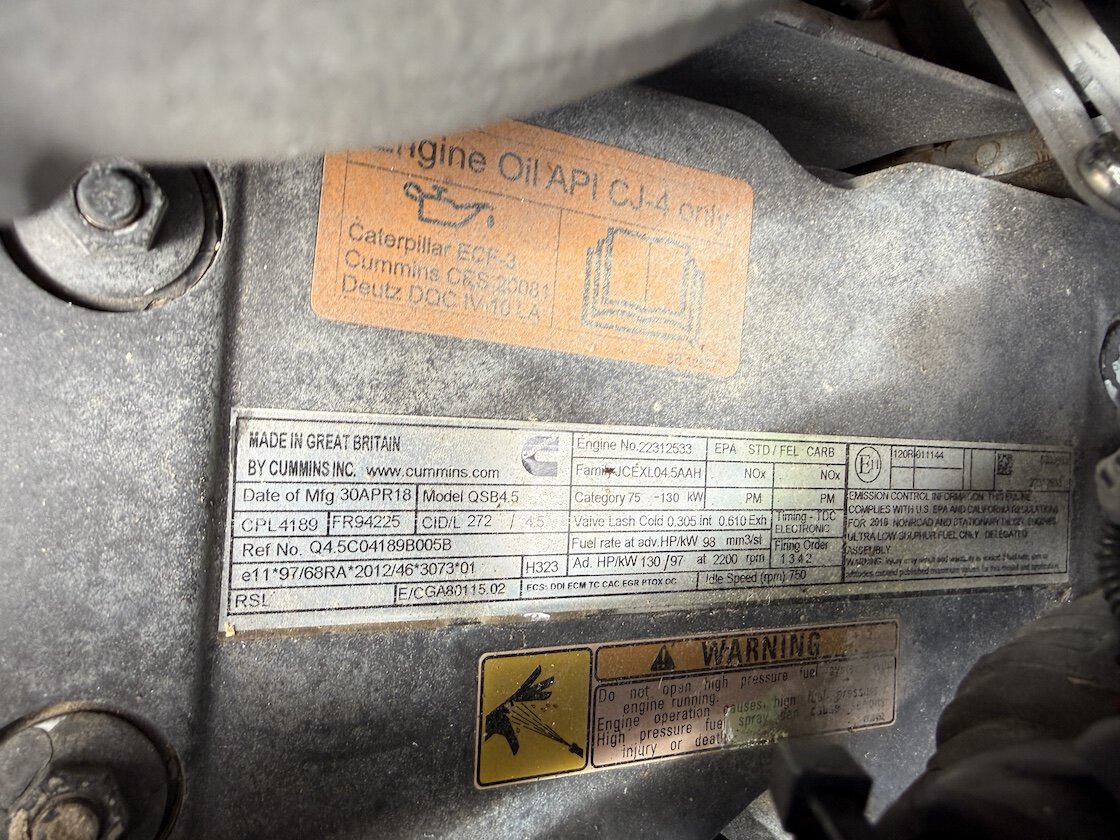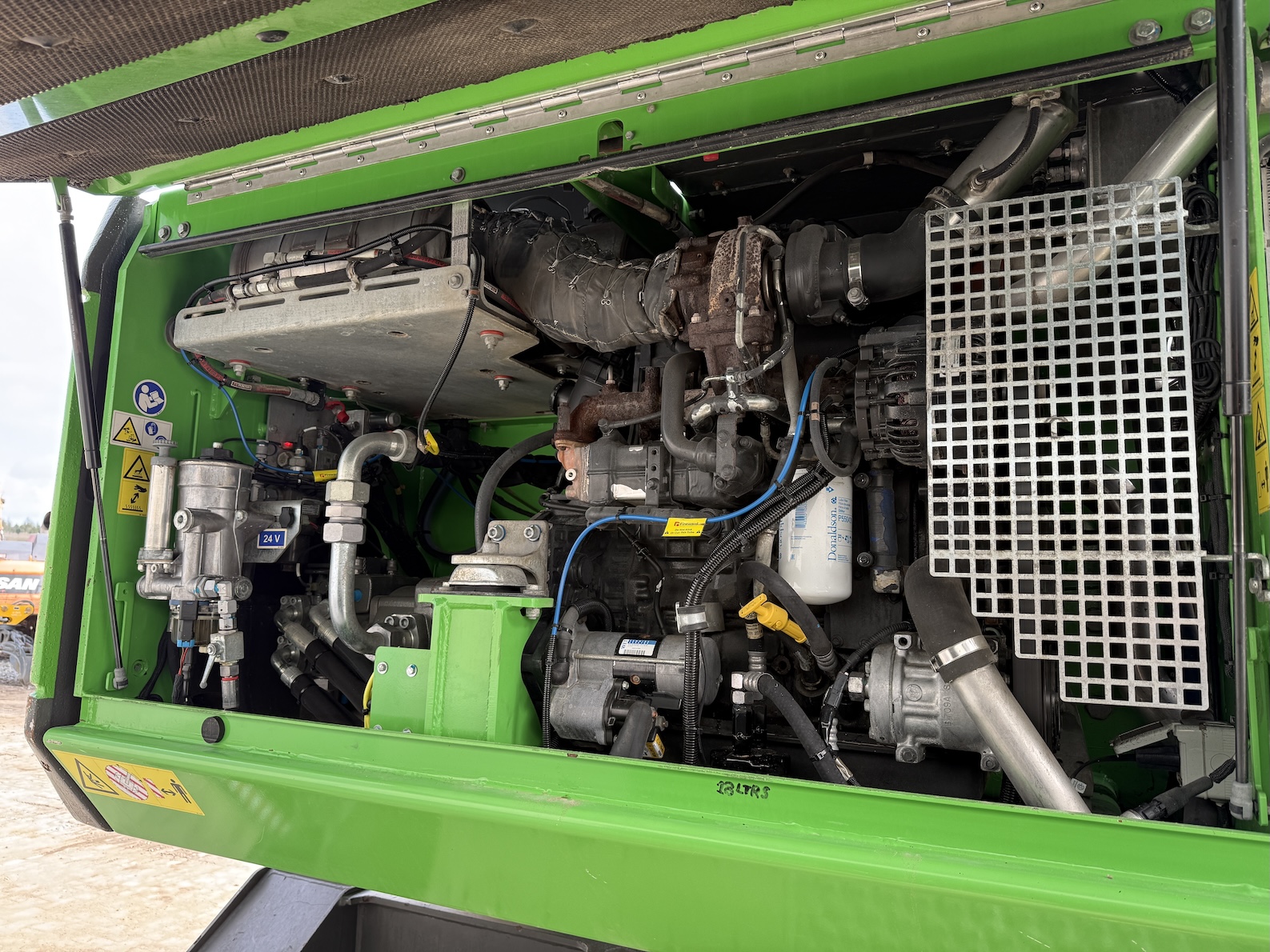 This Sennebogen 818 E material handler is equipped with a 4 cilinder water cooled turbo charged Cummins QSB4.5 (97kW) diesel engine with 9665 working hours on the service meter. NPK DG-20 demolition grab from 2018, cabin protection, full rubber tires, central lubrication, CE document, additional books, rear and side view camera (can be fixed on request), GKD height limiting system, Fireward automatic fire suppression, airco, radio etc.