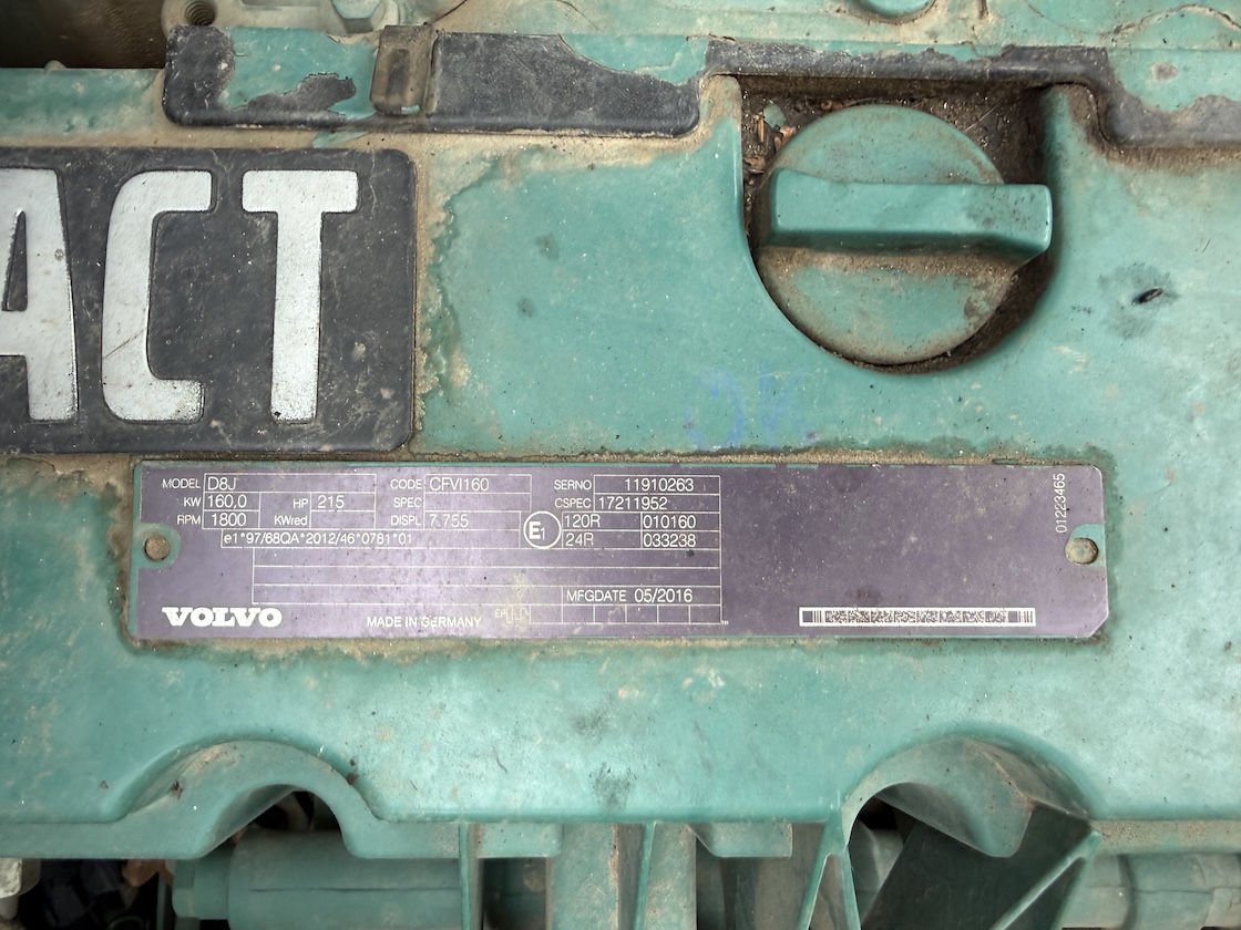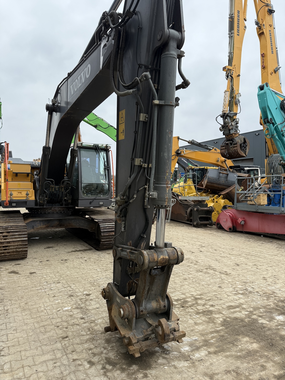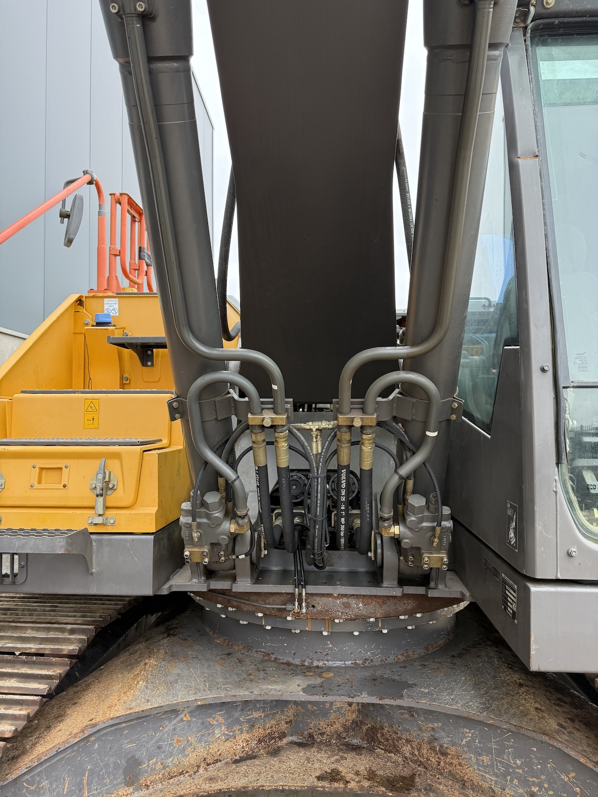 This Volvo EC250EL is equipped with a 6 cylinder water cooled turbo charged Volvo D8J (160kW) diesel engine with 12.272 working hours on the service meter. Slew ring in poor condition. Hydraulic quick hitch system, hydraulics for hammer and shear functions, safety rails on top of the machine, operator manual, rear view camera, electric diesel pump, airco, radio etc..