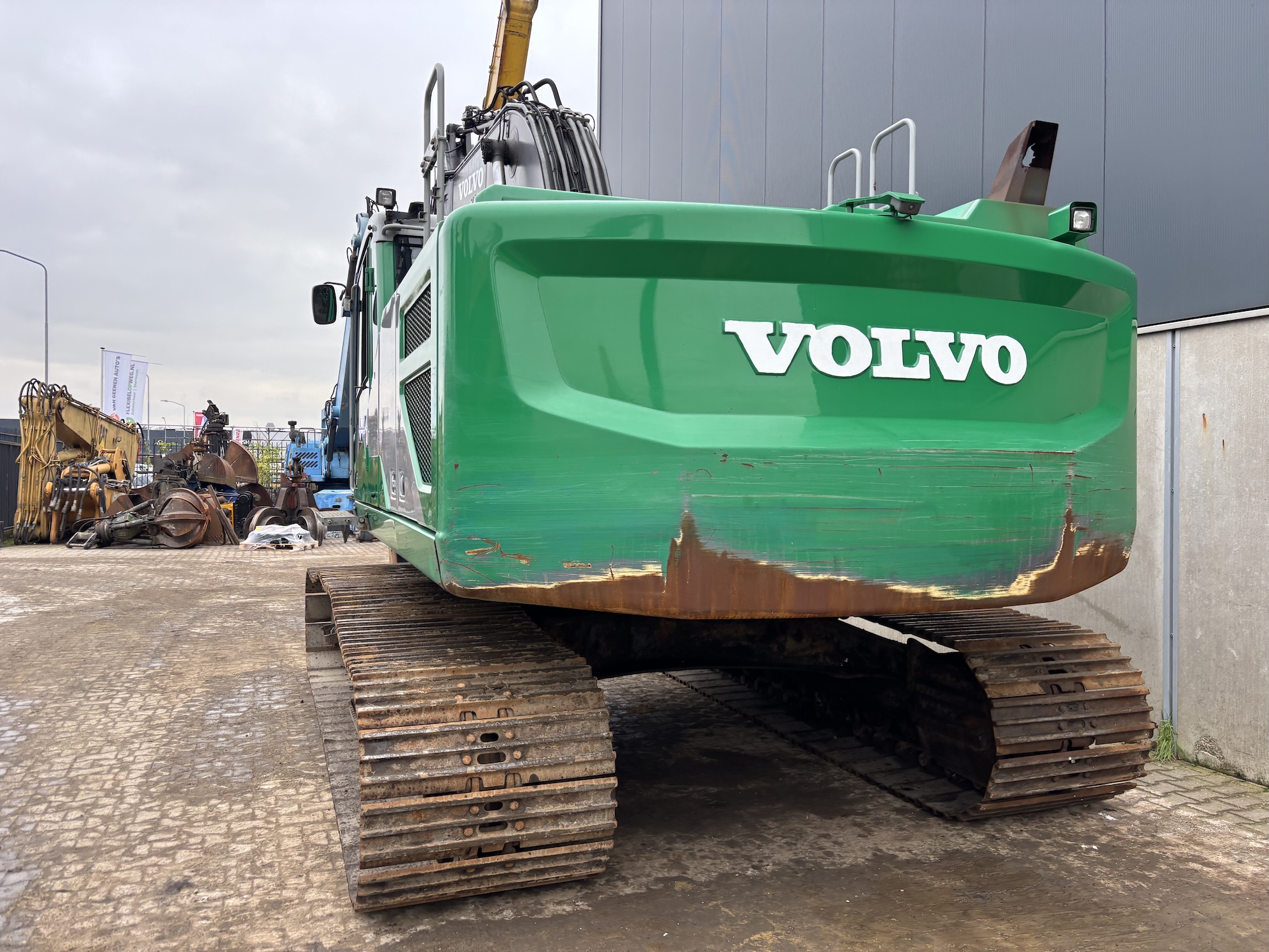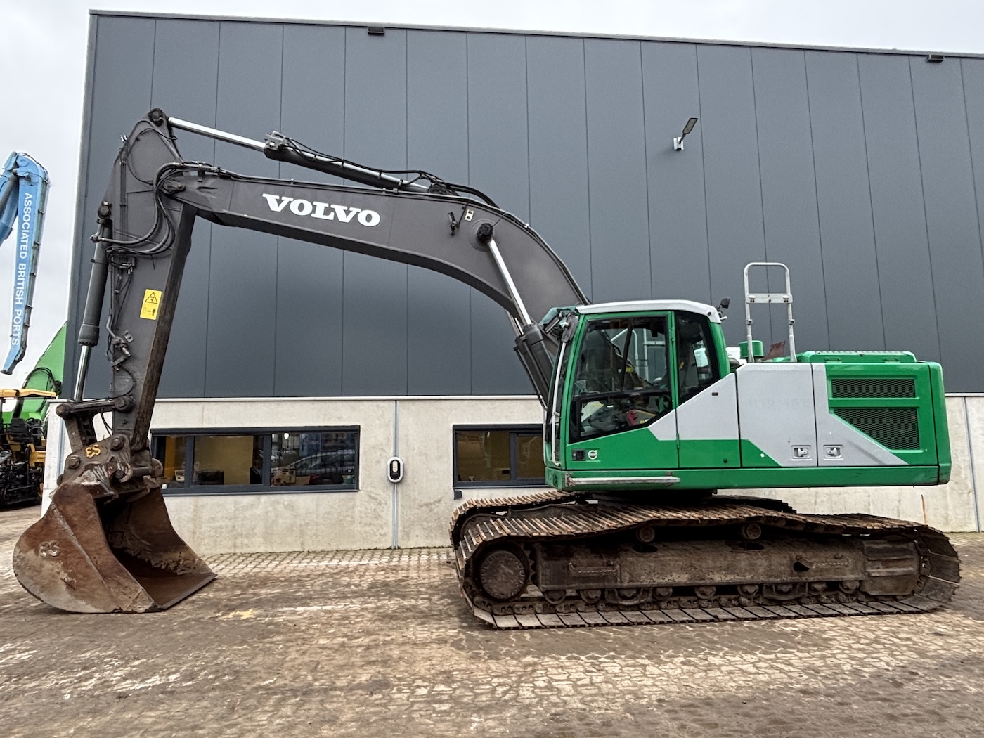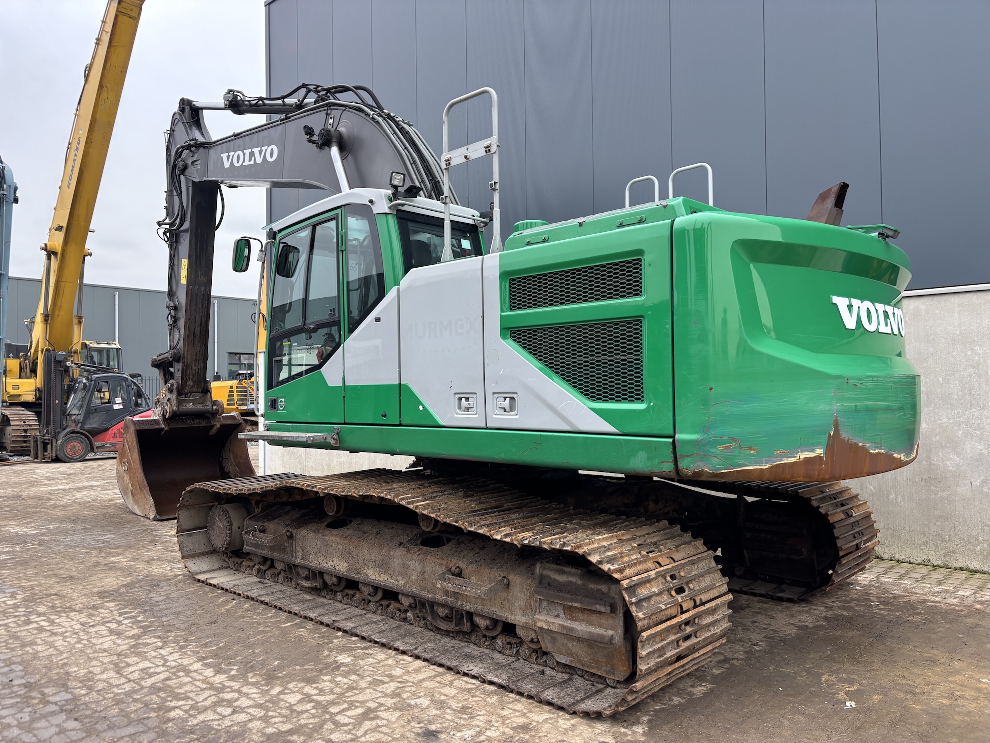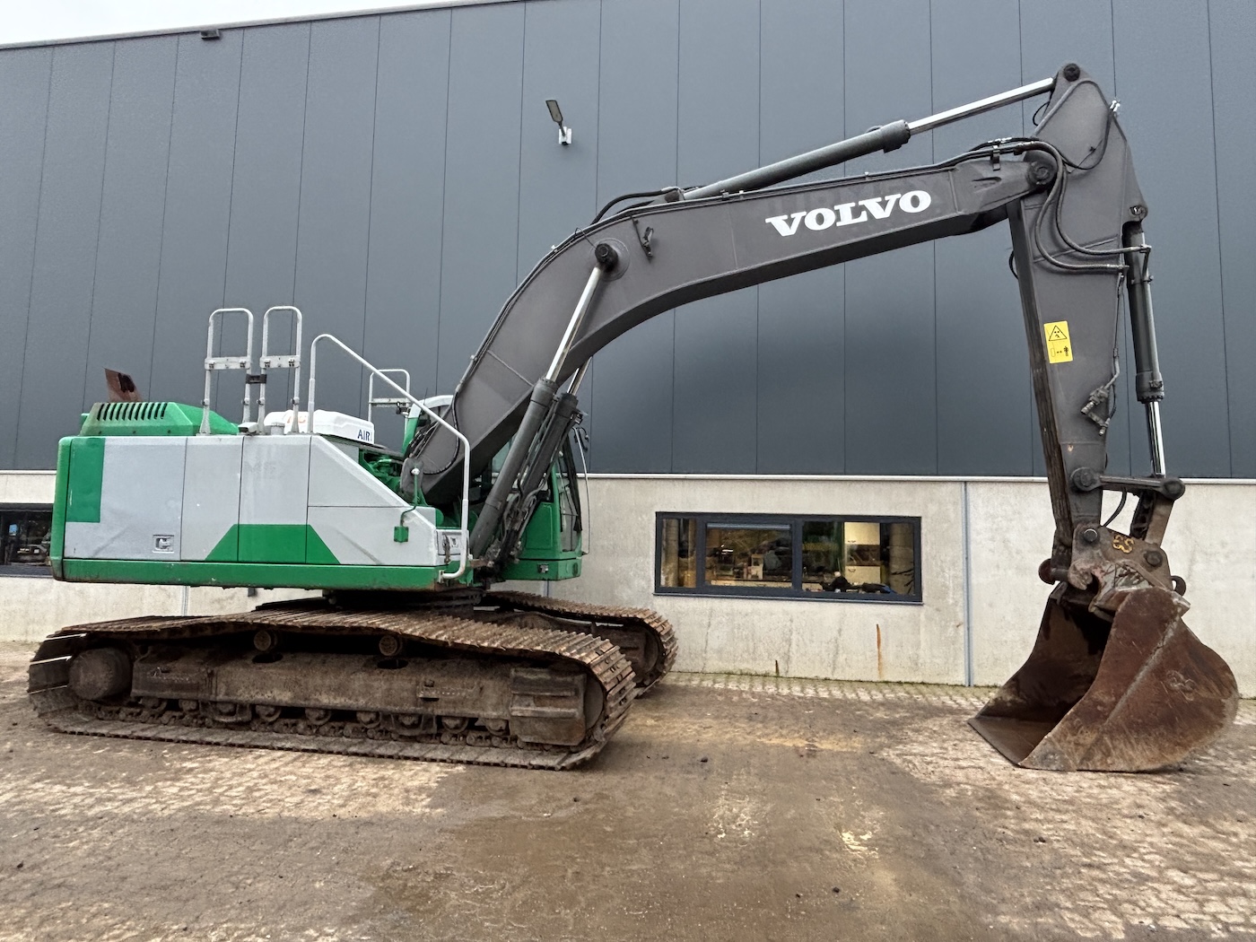 This Volvo EC300EL is equipped with a 6 cilinder water cooled turbo charged Volvo D8J (180kW) diesel engine with 13199 working hours on the service meter. Excellent bucket with CW hydraulic quick coupler, hydraulics for hammer and rotation function, central lubrication, all books and papers included, read and side view camera, airco, radio, additional work lights, electric diesel pump, additional cabin filter system etc..