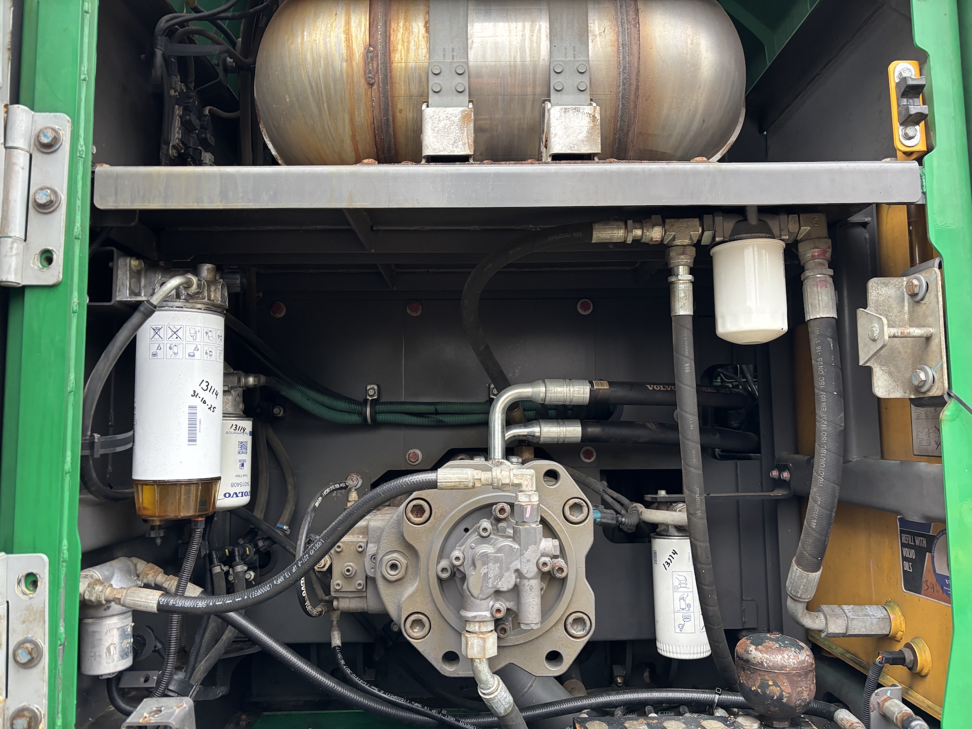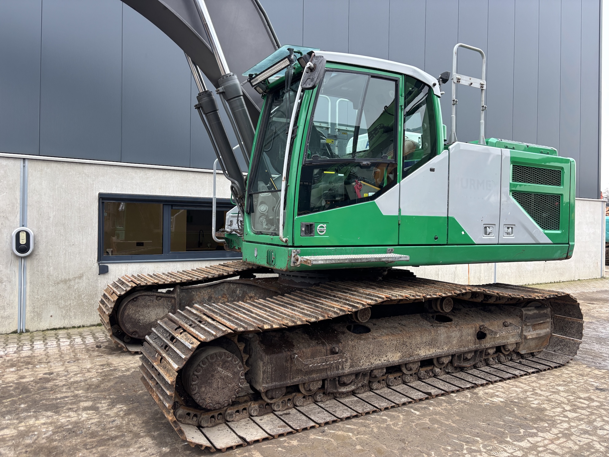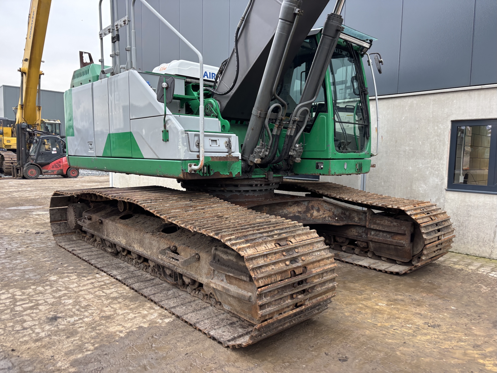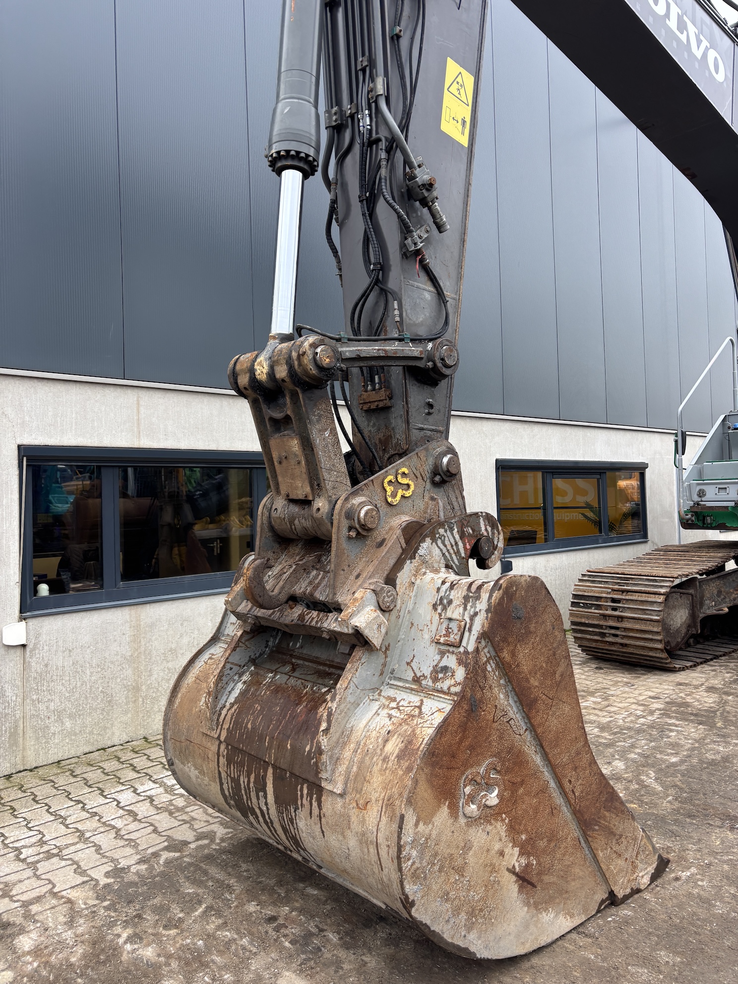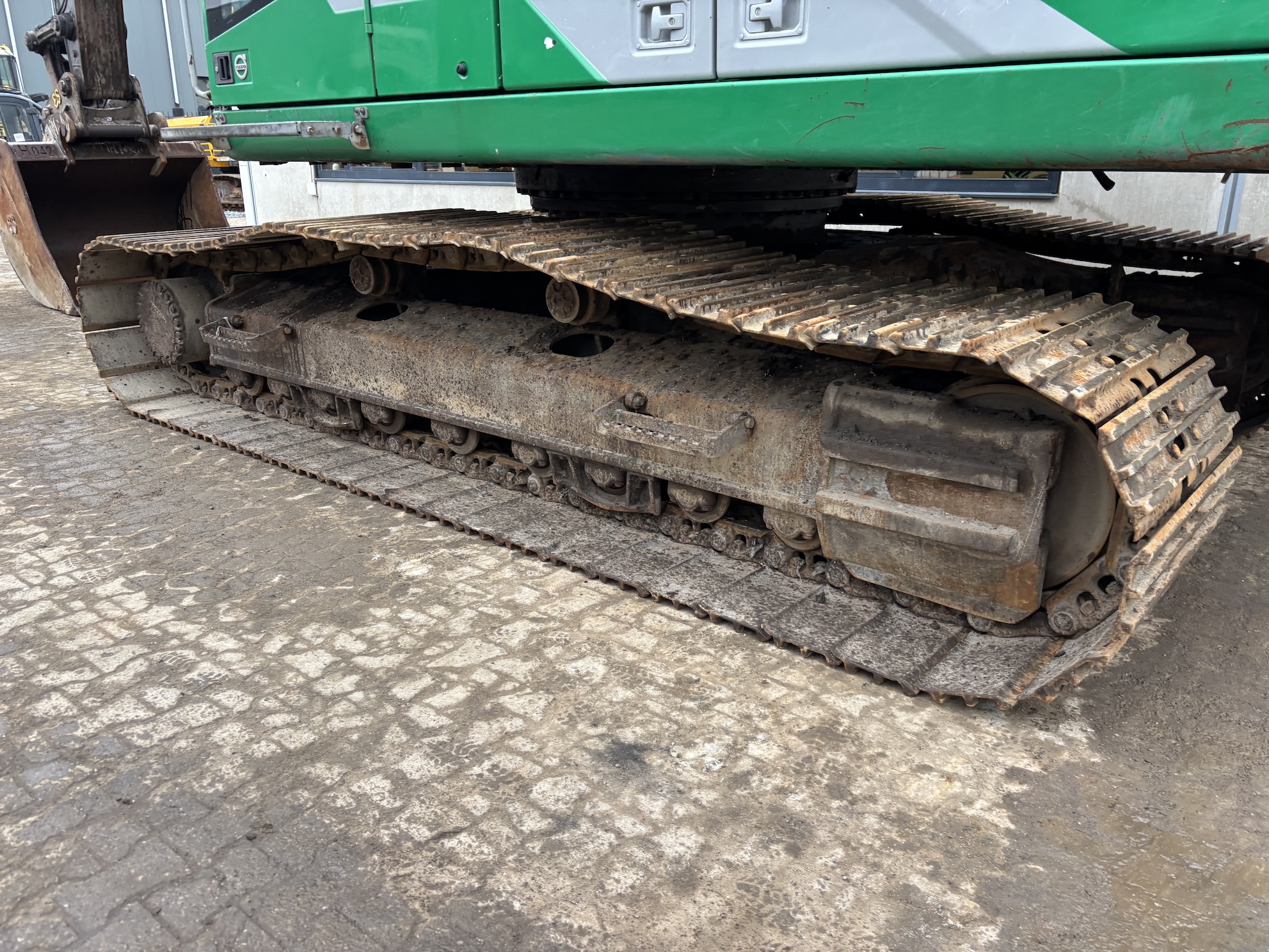 This Volvo EC300EL is equipped with a 6 cilinder water cooled turbo charged Volvo D8J (180kW) diesel engine with 13199 working hours on the service meter. Excellent bucket with CW hydraulic quick coupler, hydraulics for hammer and rotation function, central lubrication, all books and papers included, read and side view camera, airco, radio, additional work lights, electric diesel pump, additional cabin filter system etc..