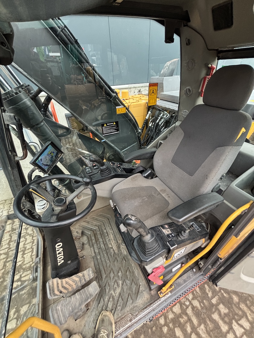 This Volvo EWR150E is equipped with a 4 cilinder water cooled turbo charged Volvo D4J (105kW) diesel engine with 10296 working hours on the service meter. Hydraulic quick hitch, digging bucket, hydraulics for rotation and hammer piping, VA boom, dozer blade, additional work lights, all round camera system, central lubrication, radio, airco etc.